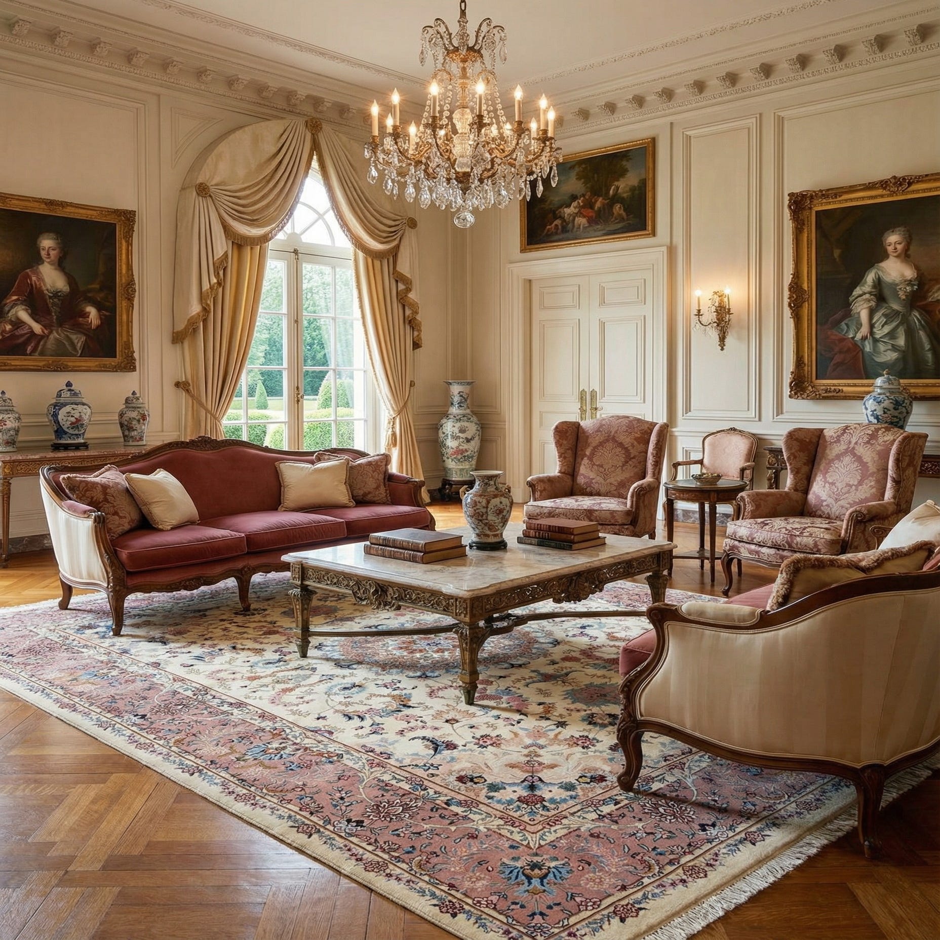 Primary color is Beige. Colors in this rug include: Beige, Cream, Pink, Blue, Olive, Black, Red, Brown.