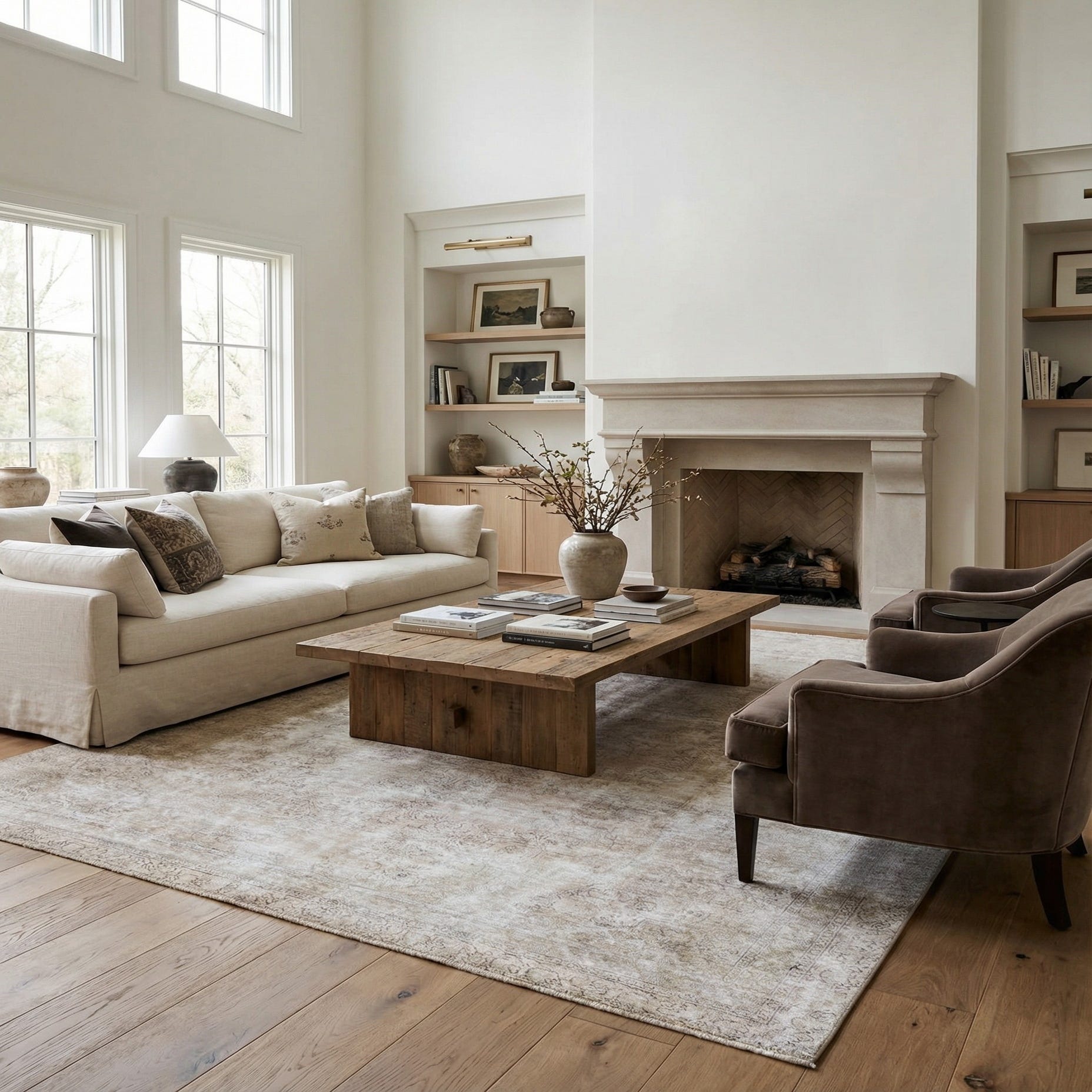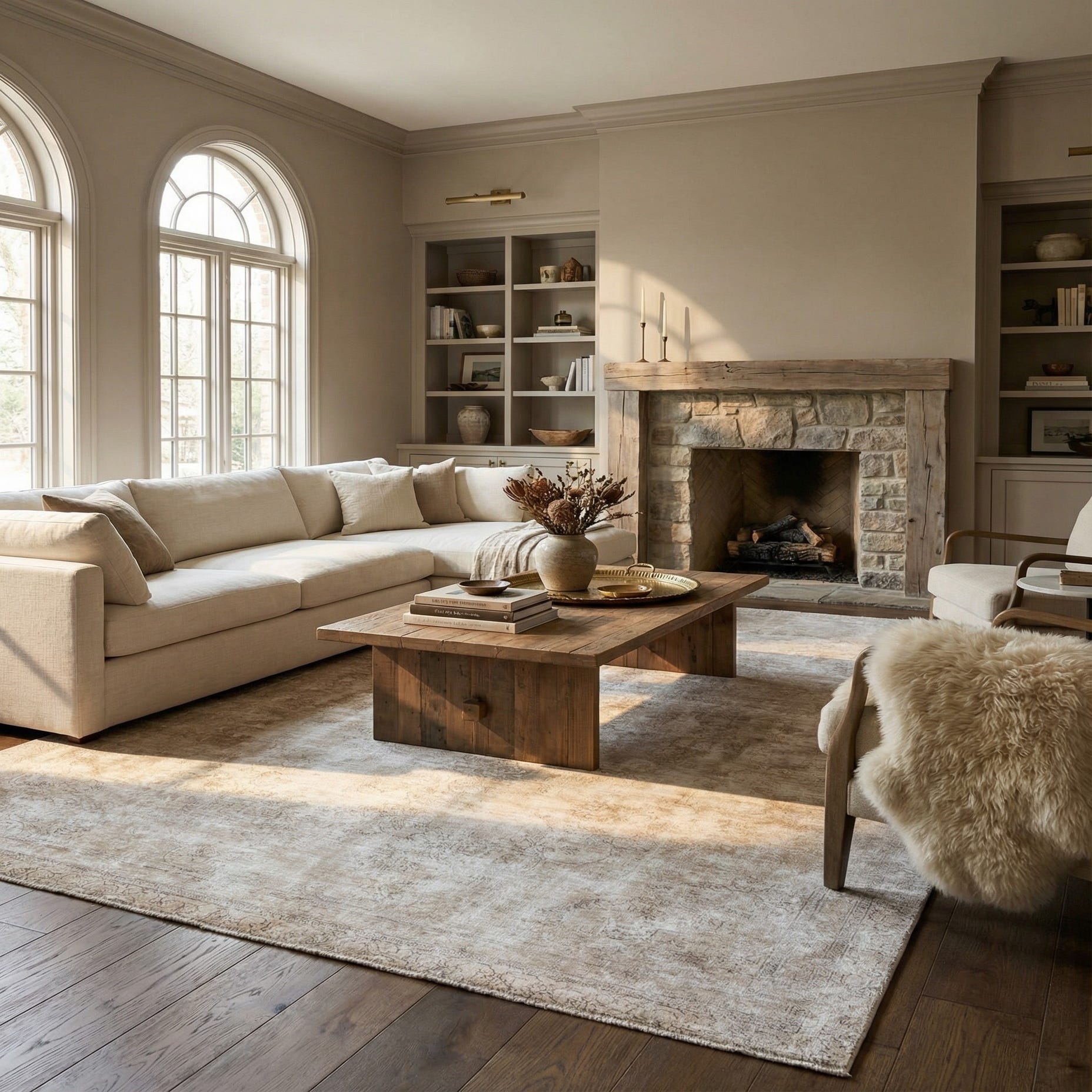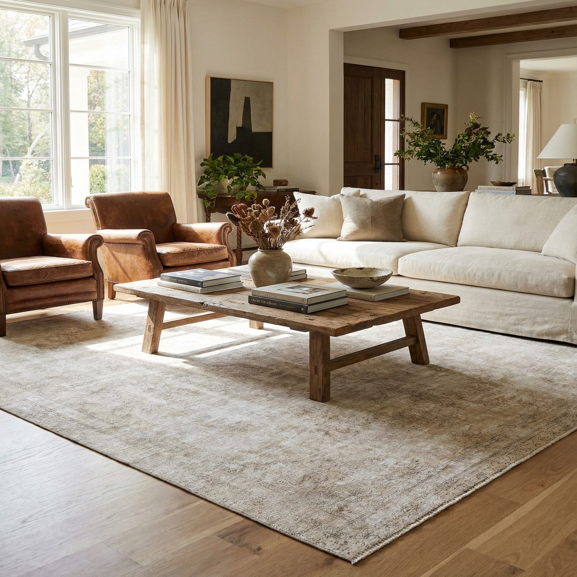 Primary color is Beige. Colors in this rug include: Beige, Ivory, Brown.