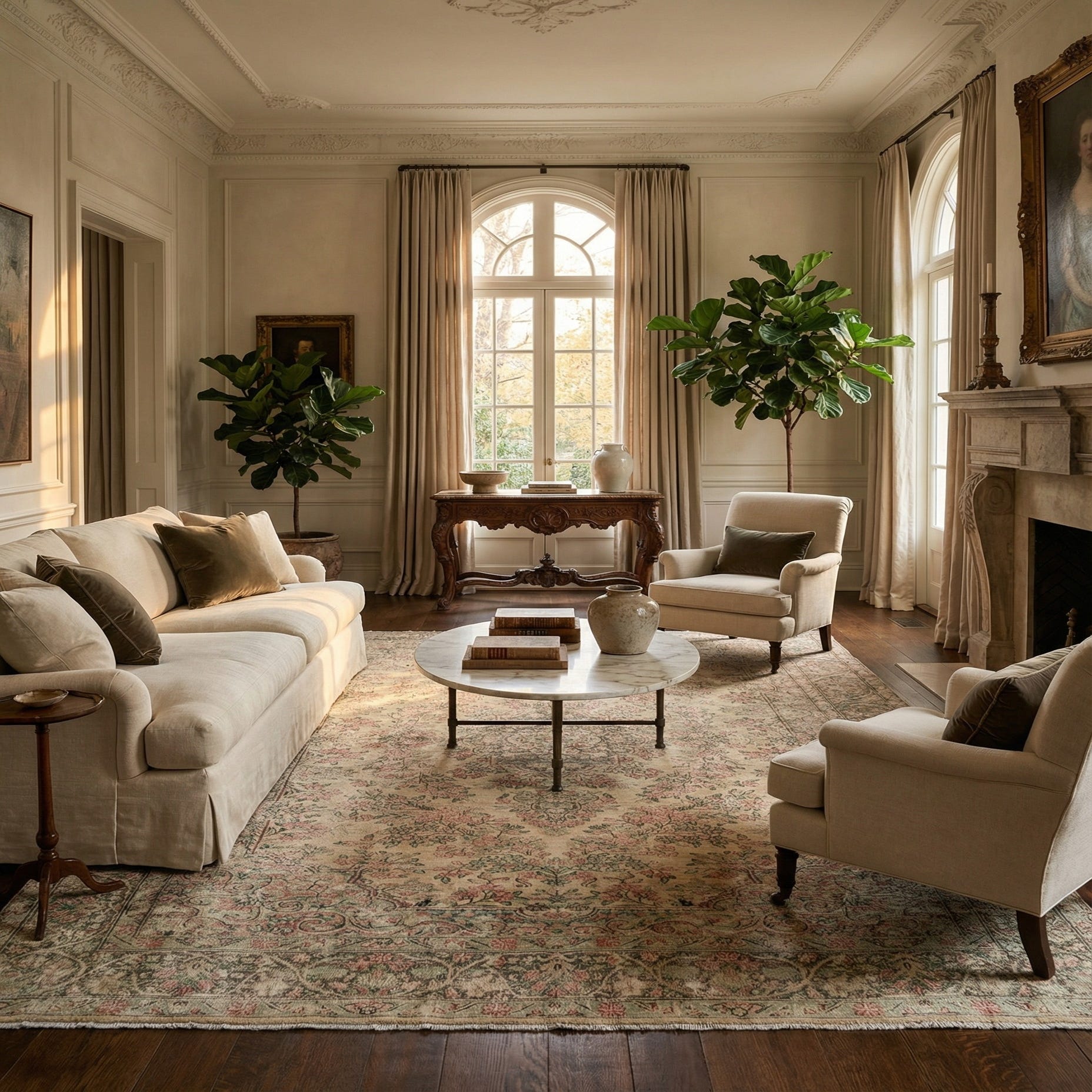 Primary color is Beige. Colors in this rug include: Beige, Cream, Pink, Green, Beige.