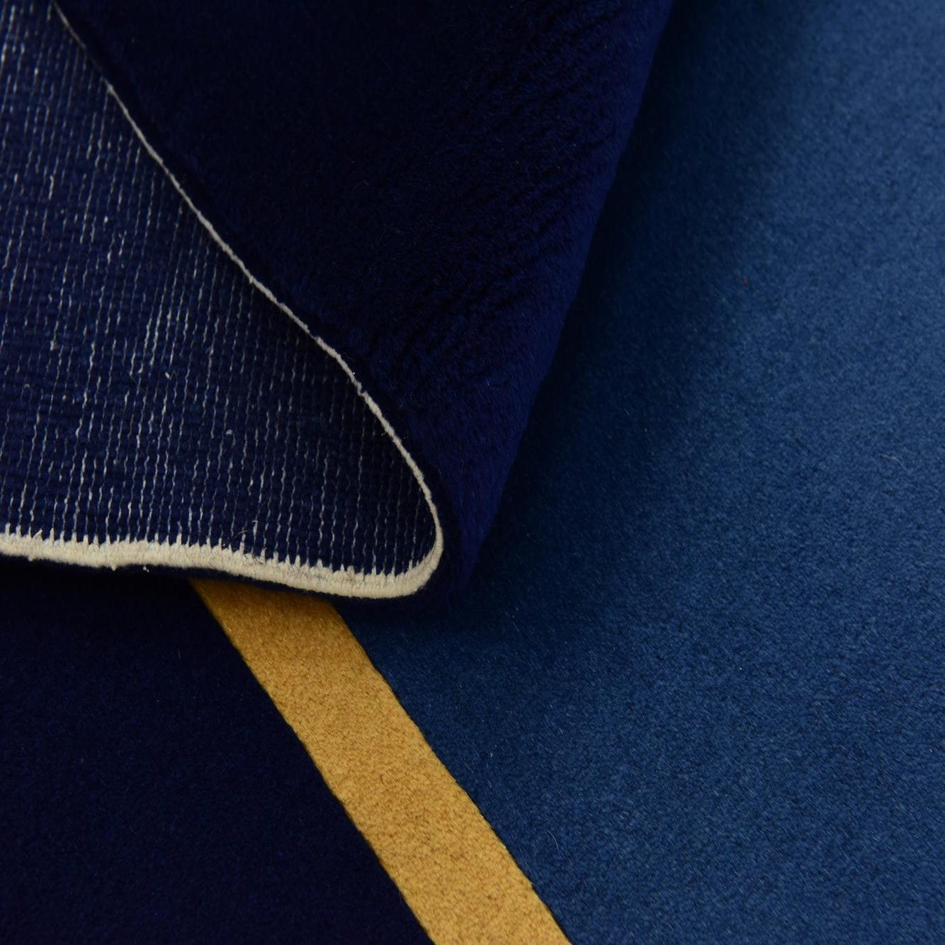 Primary color is Beige. Colors in this rug include: Beige, Navy Blue.