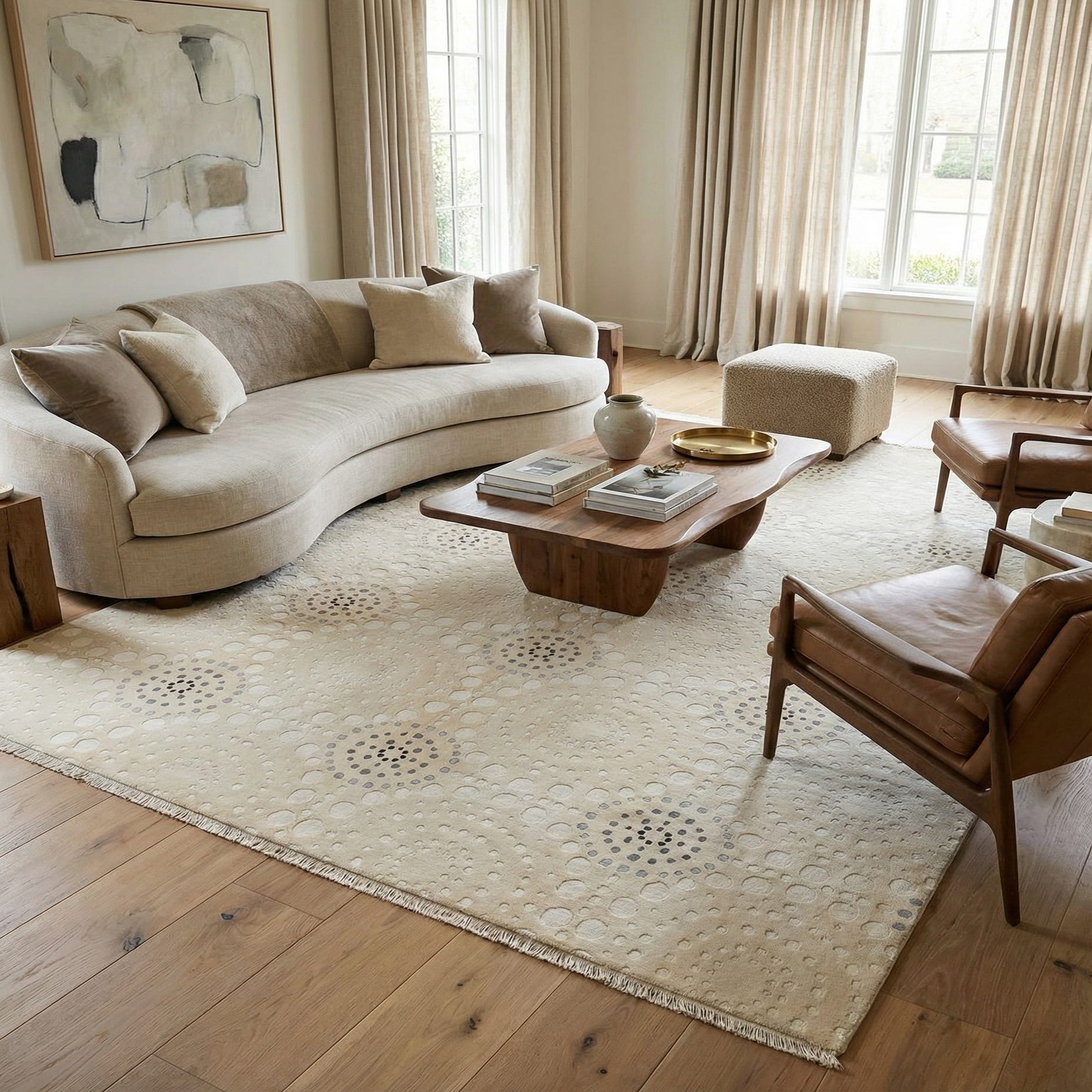 Primary color is Beige. Colors in this rug include: Beige, Black, Ivory, Silver, Cream.