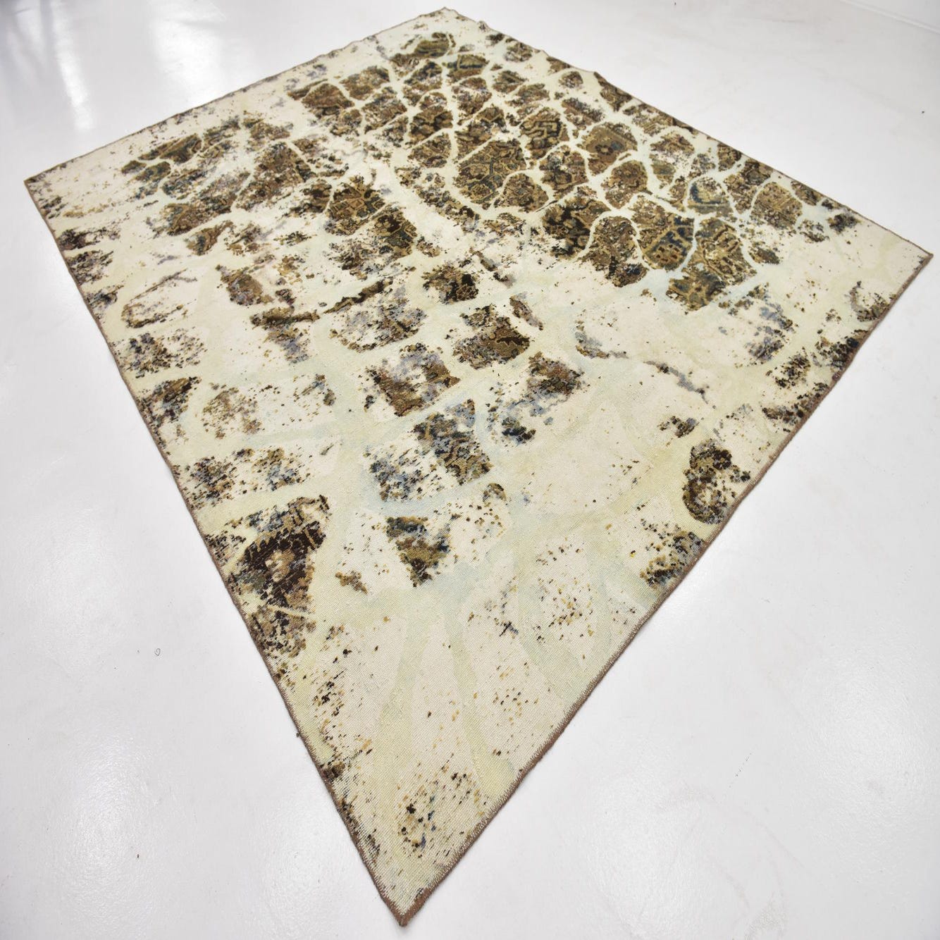 This Persian Ultra Vintage rug is an antique Persian Rug that has been washed, over-dyed, and then shaved down to a low pile. Look at the detail pictures to fully appreciate the uniqueness of this piece.