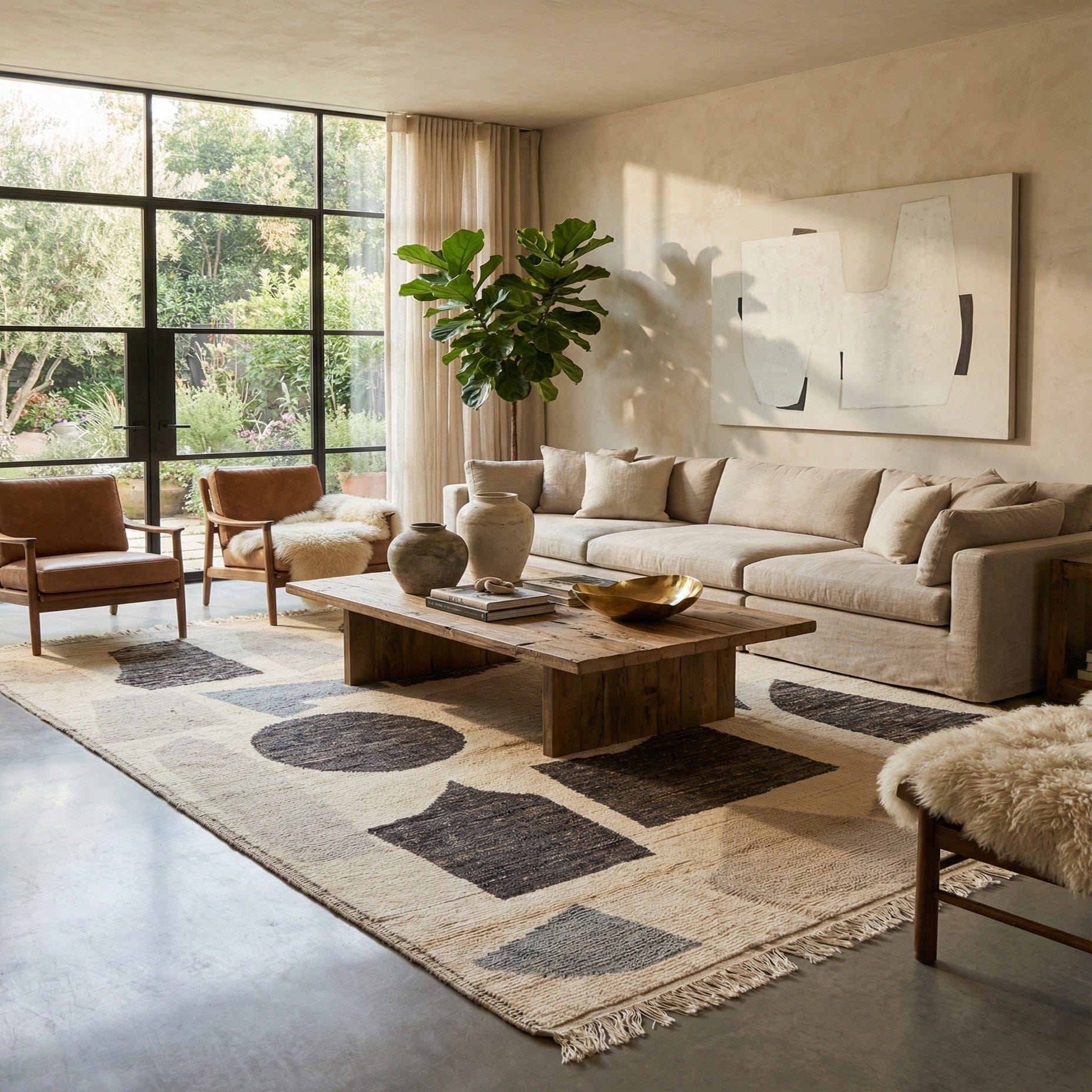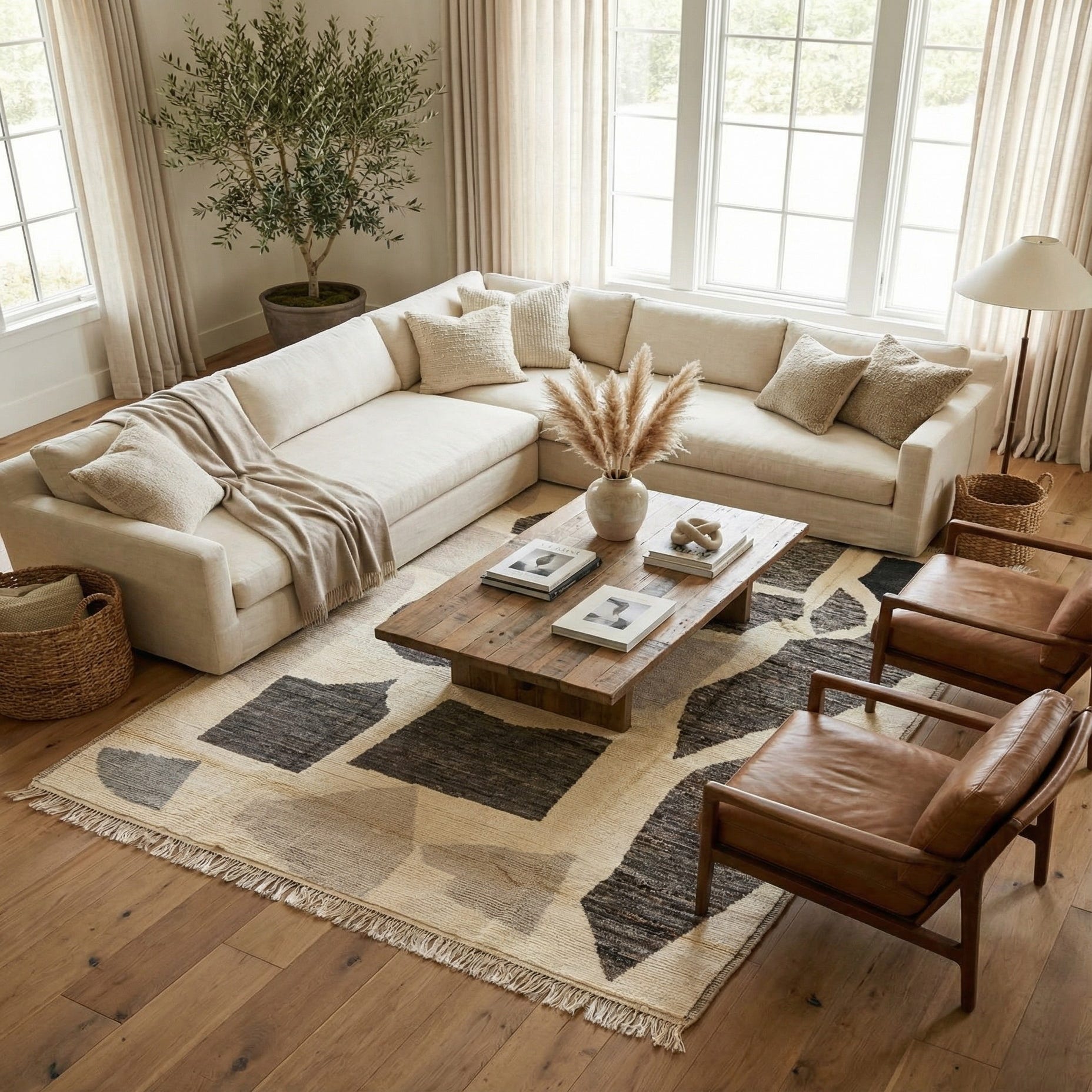 Primary color is Beige. Colors in this rug include: Beige, Black, Brown, Gray.