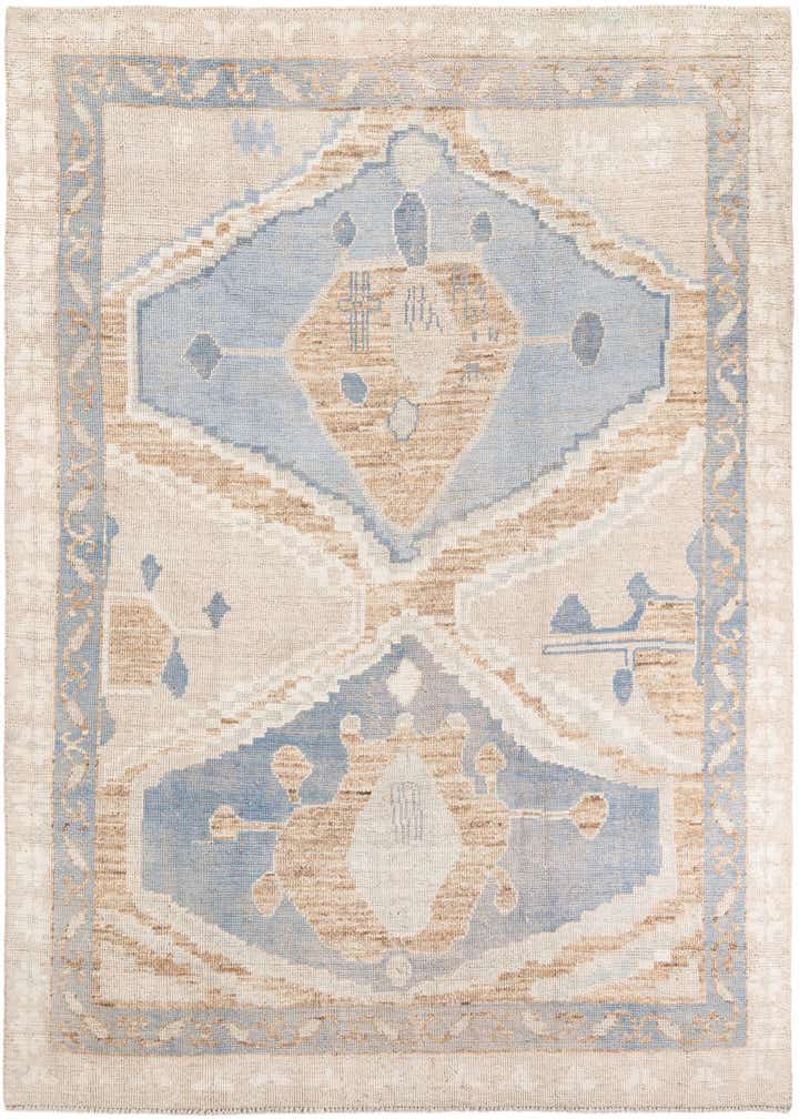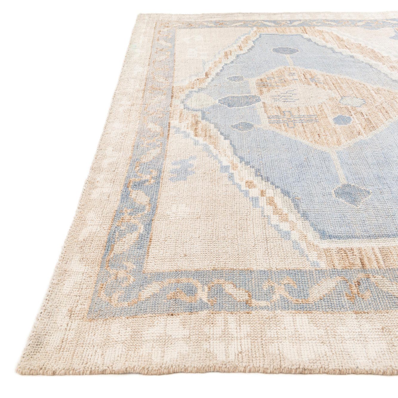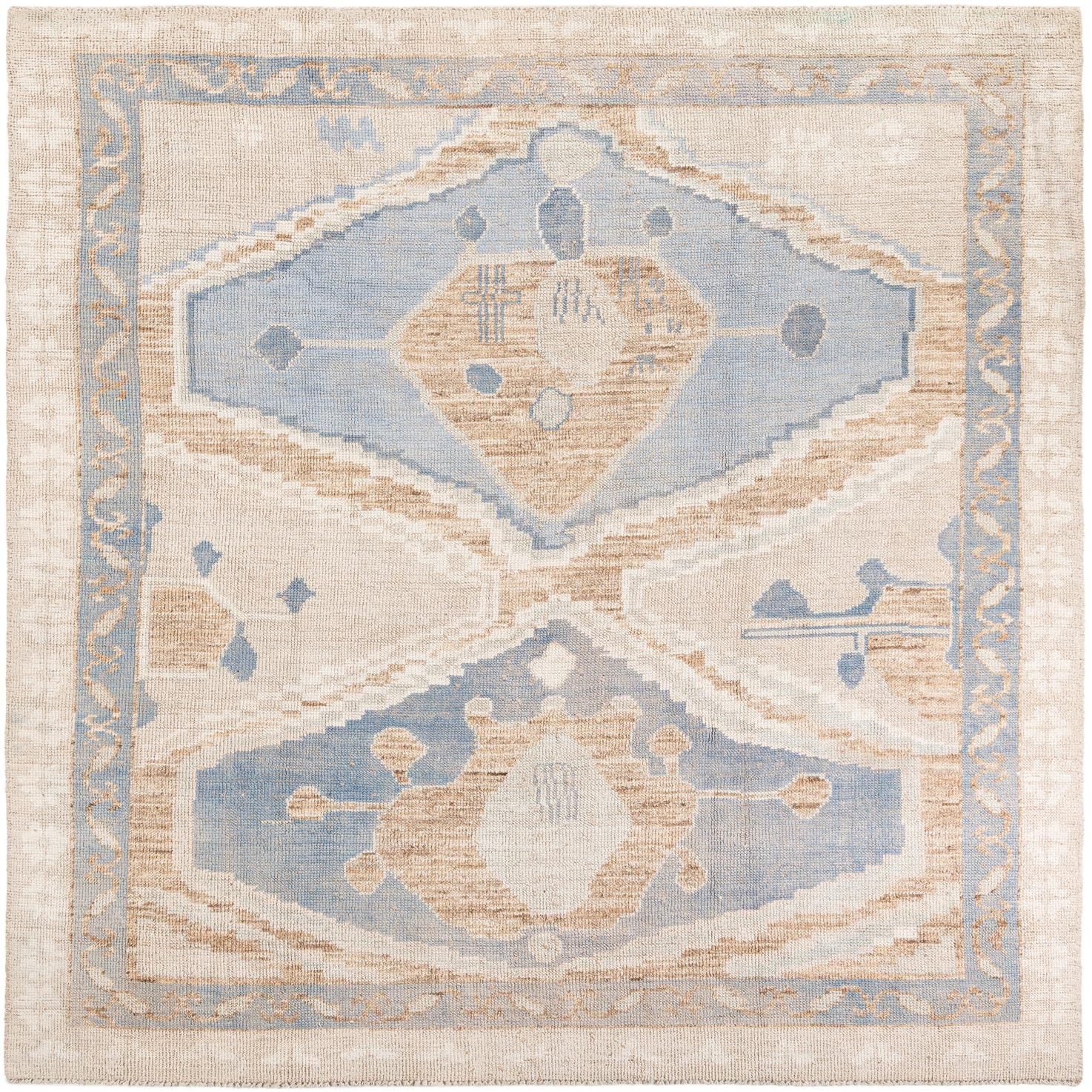 Primary color is Beige. Colors in this rug include: Beige, Brown, Gray, Light Blue, Ivory.