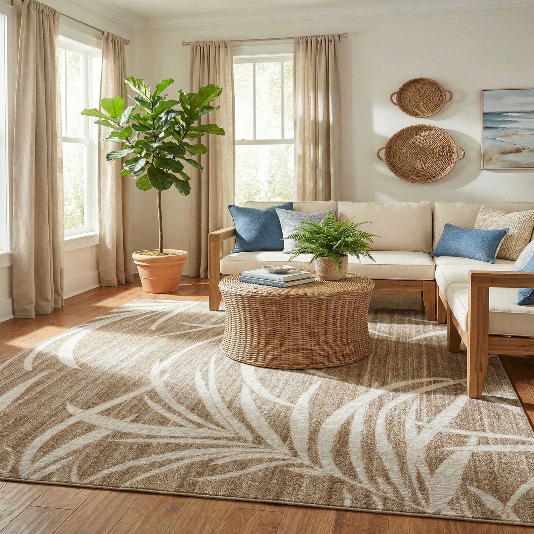 Primary image 9' x 12' 2  Washable Botanical Indoor / Outdoor Rug