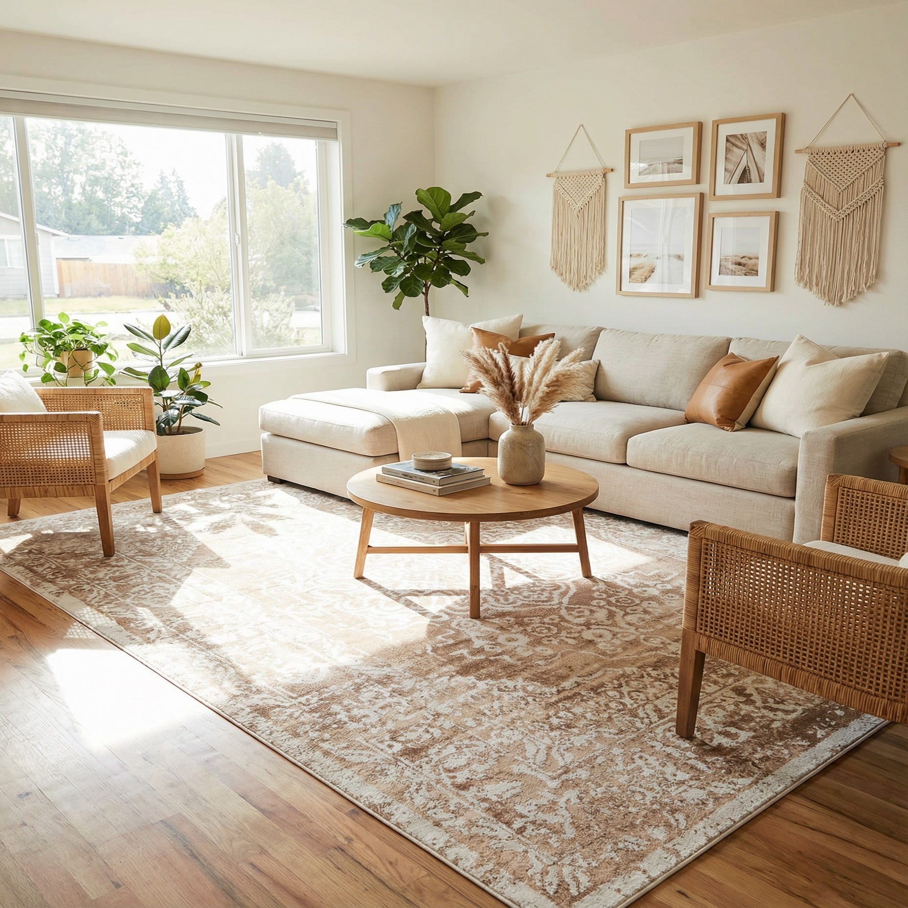 Primary color is Beige. Colors in this rug include: Beige, Ivory.