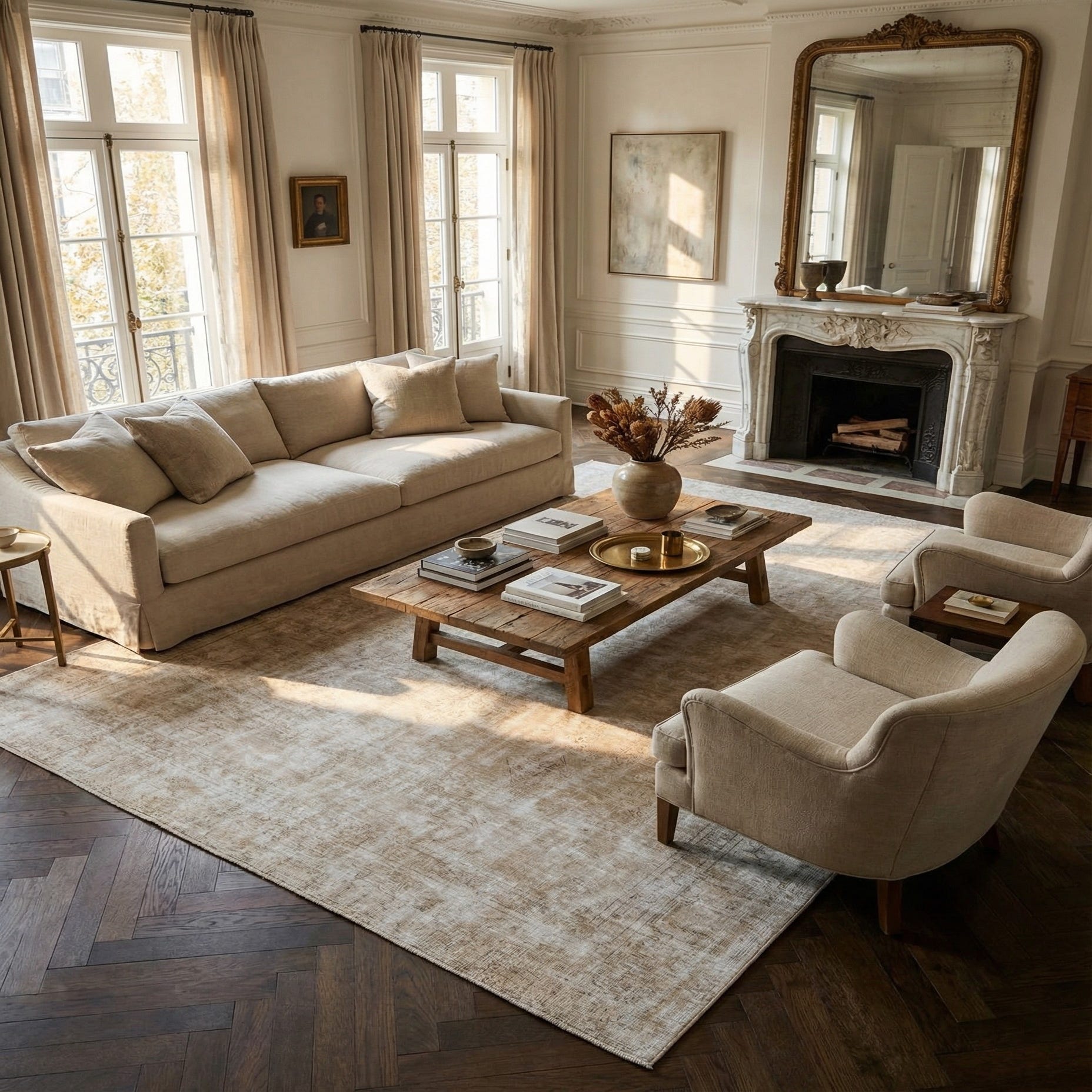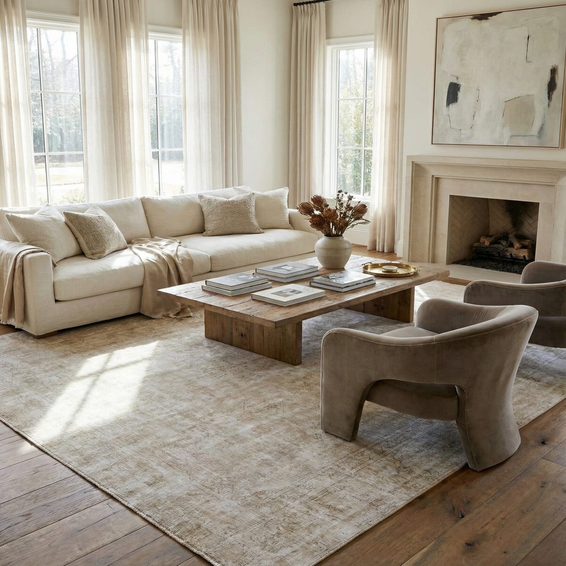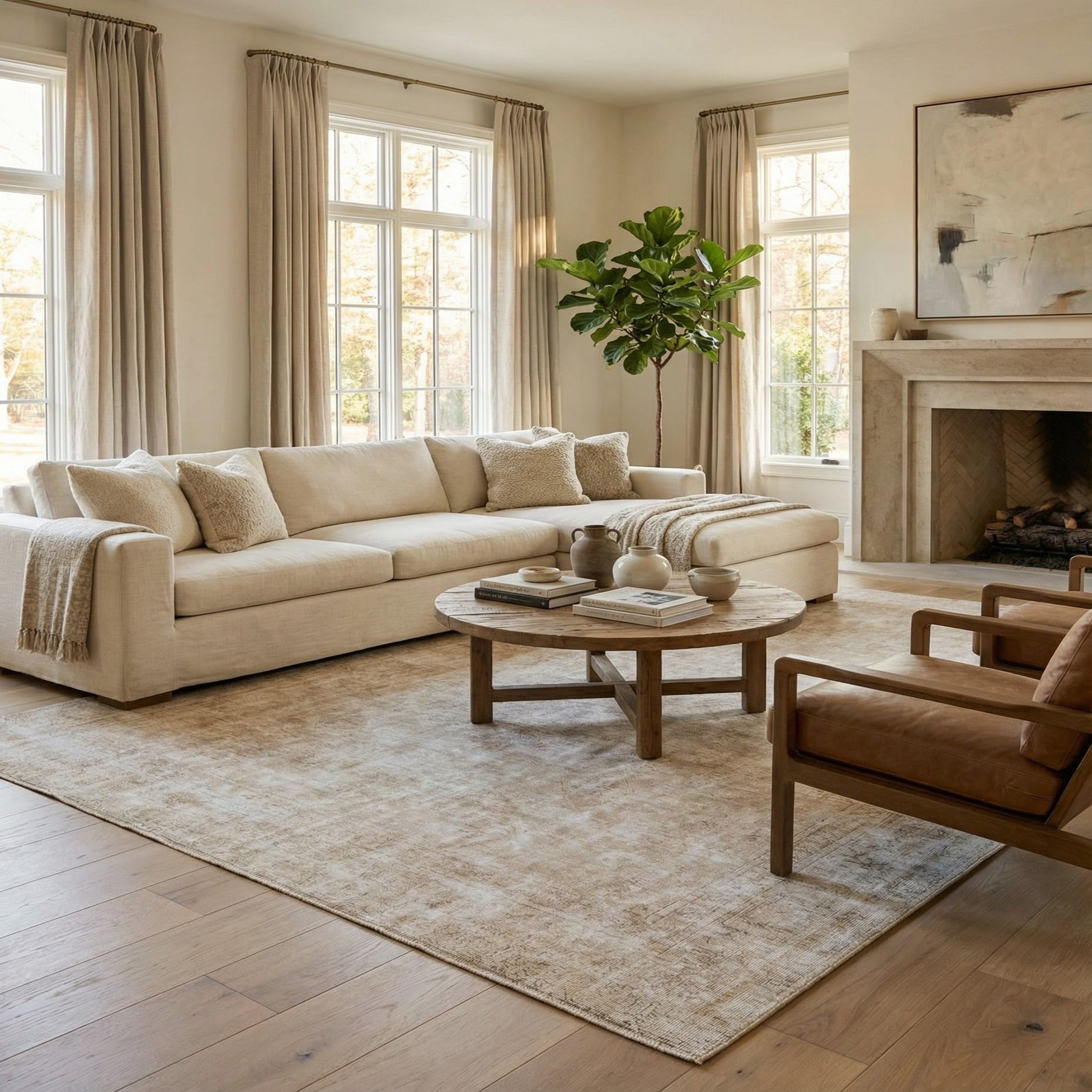 Primary color is Beige. Colors in this rug include: Beige, Brown, Ivory.