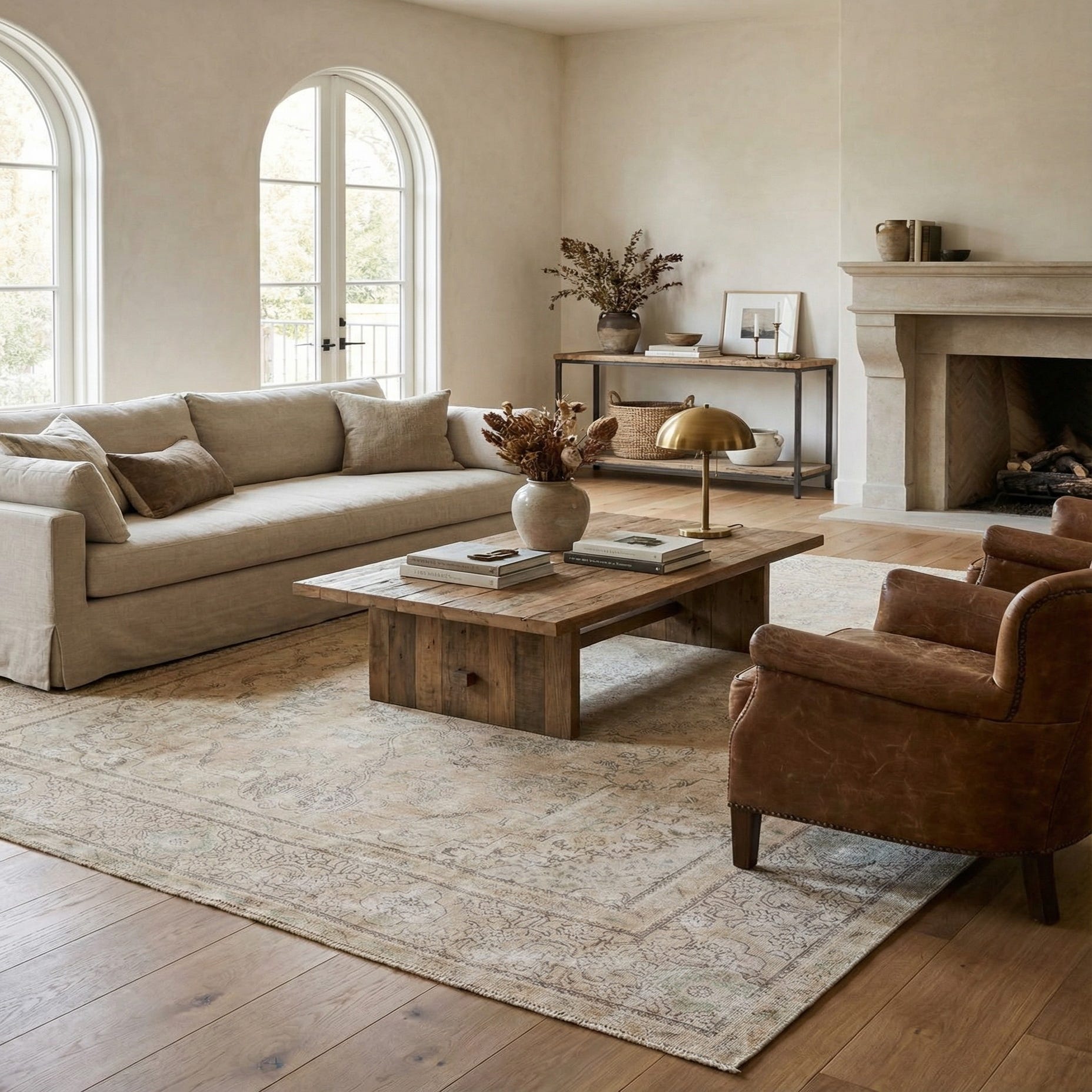 Primary color is Beige. Colors in this rug include: Beige, Light Brown, Light Green, Brown, Ivory.