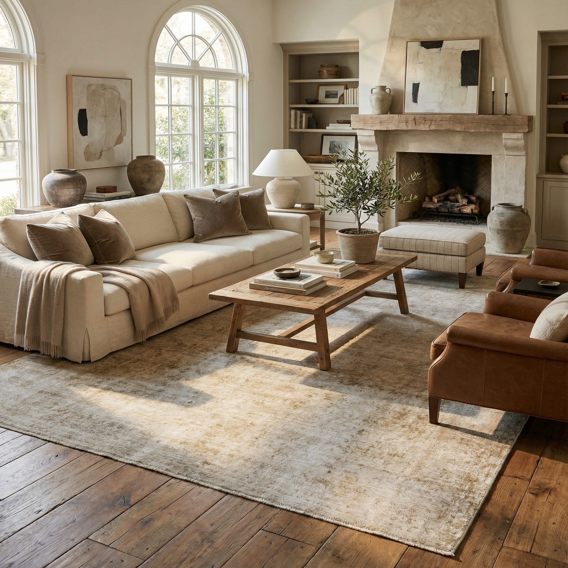 Primary color is Beige. Colors in this rug include: Beige, Gray.