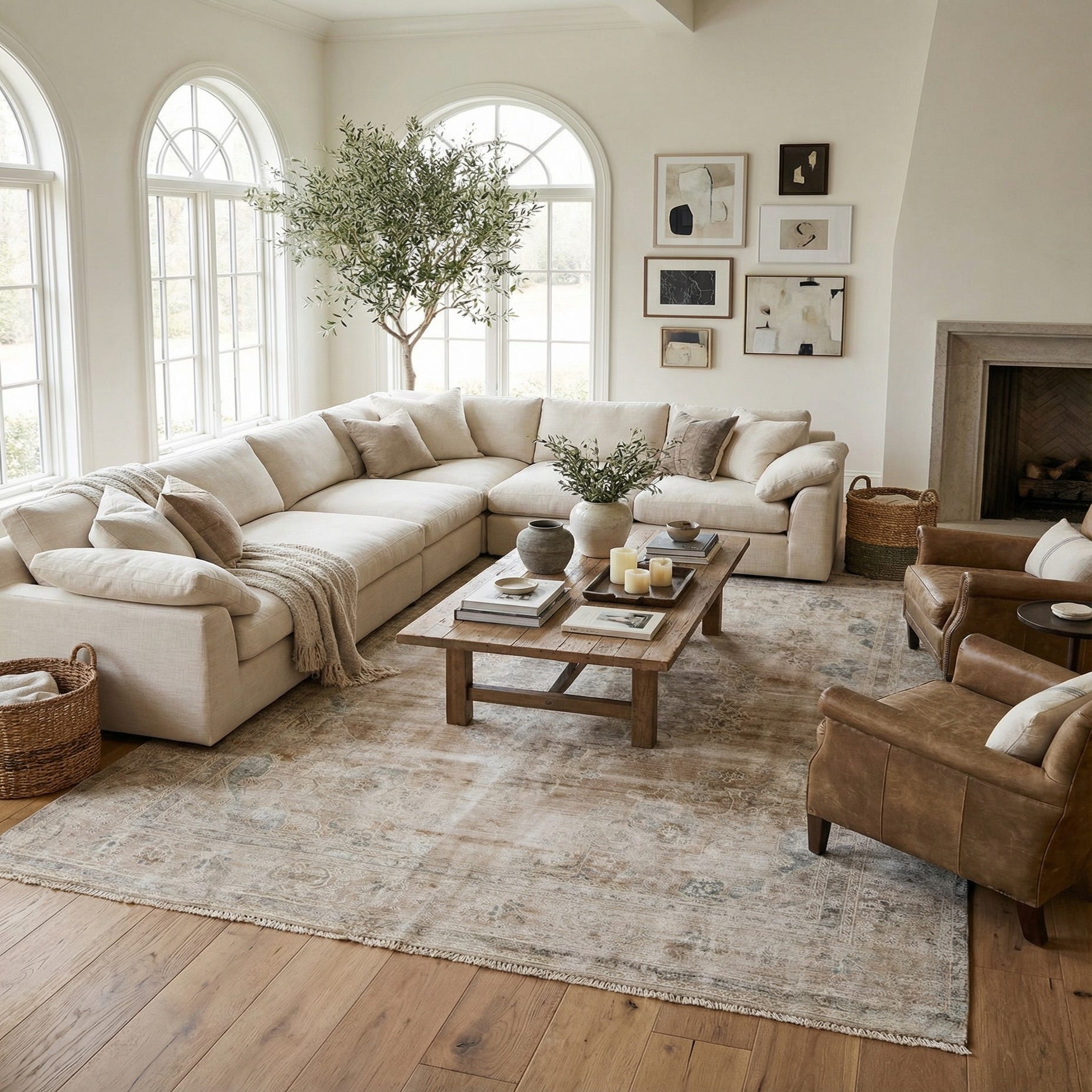 Primary color is Beige. Colors in this rug include: Beige, Brown, Green, Ivory, Gray.