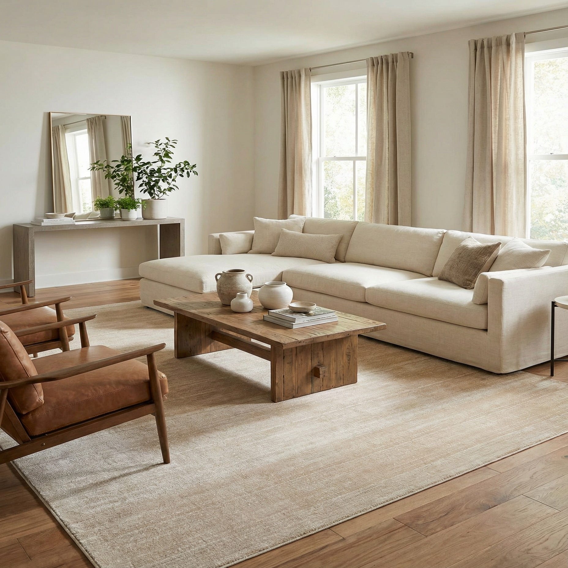 Primary color is Beige. Colors in this rug include: Beige, Light Brown, Ivory.