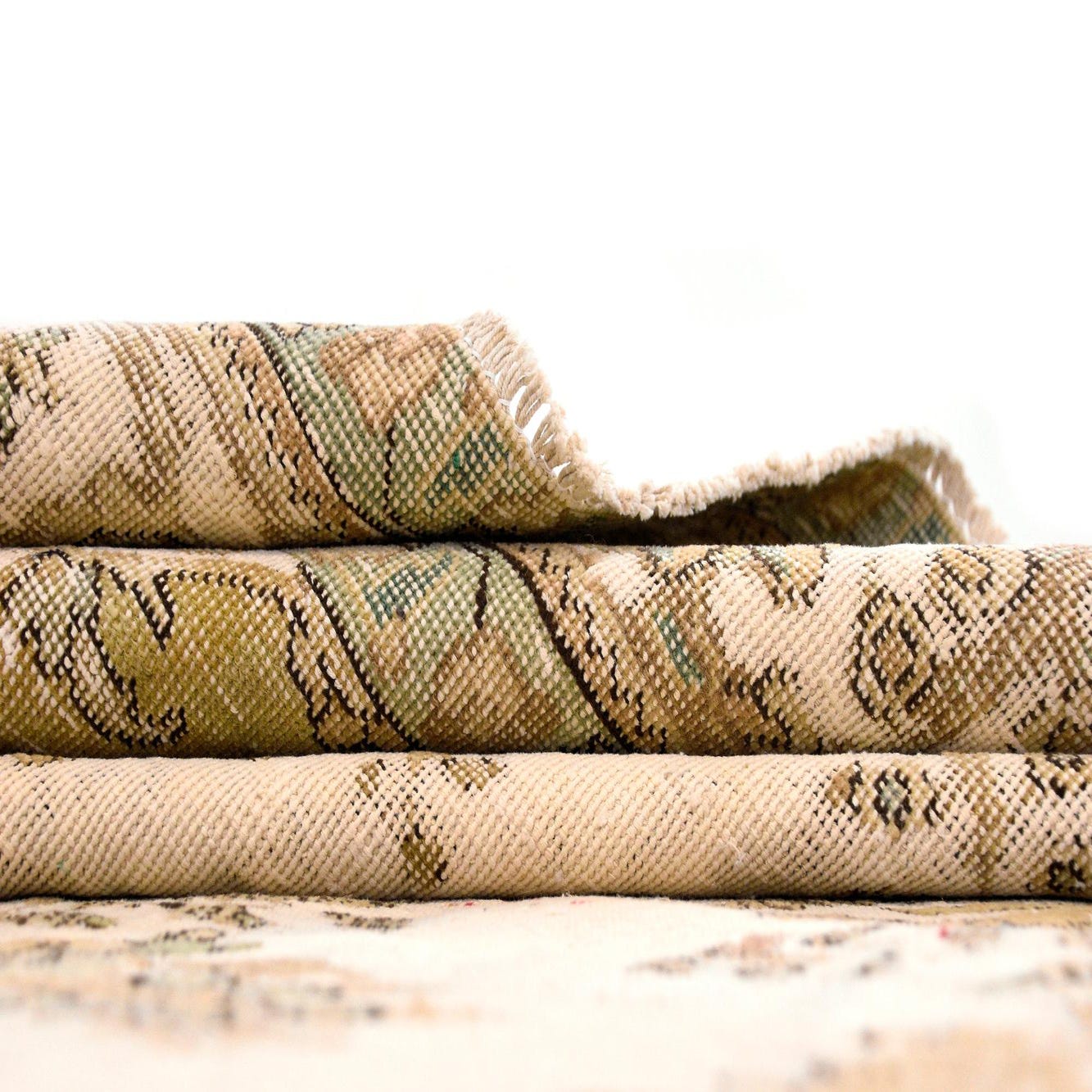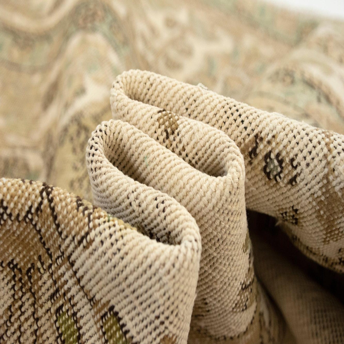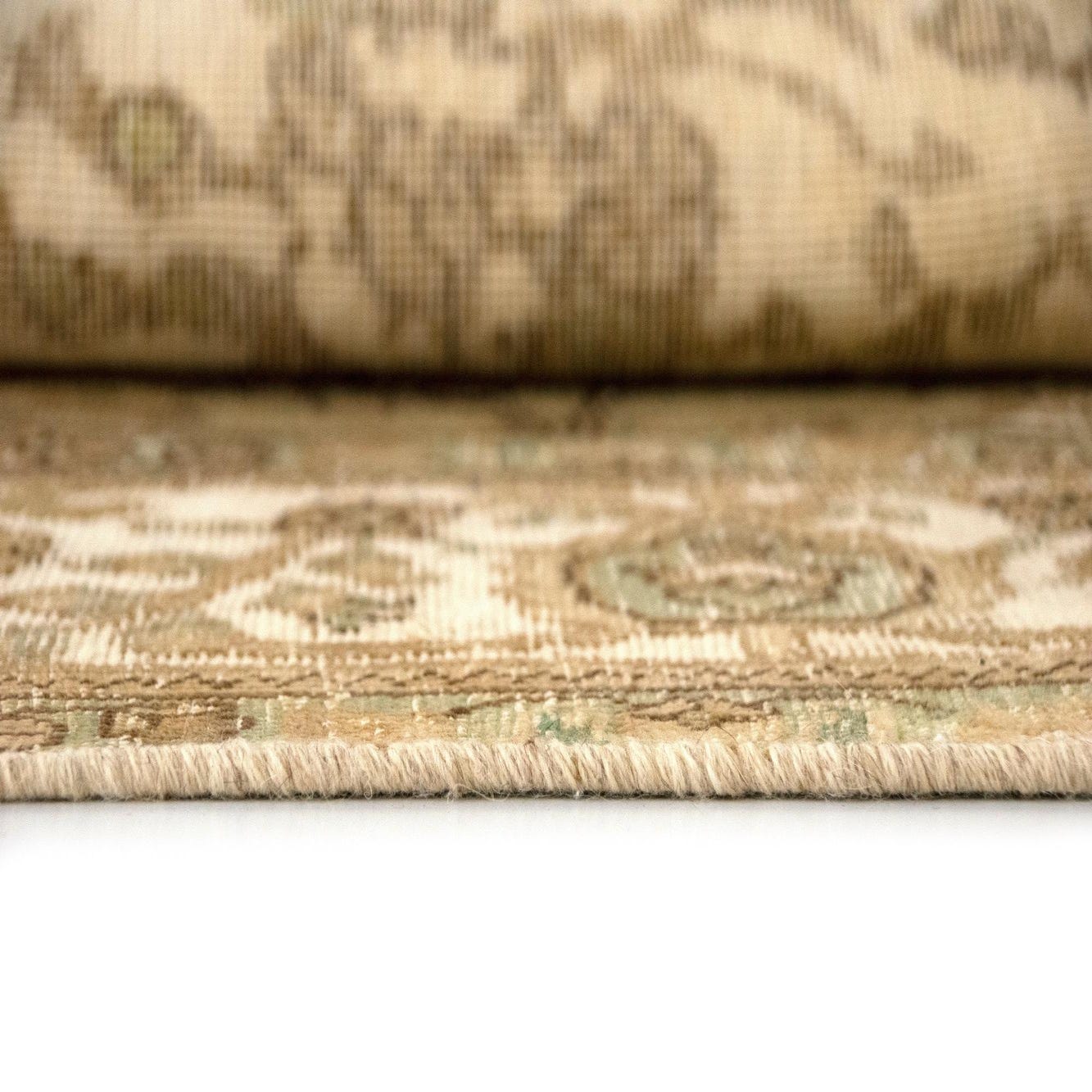 Primary color is Beige. Colors in this rug include: Beige, Green, Brown, Cream.