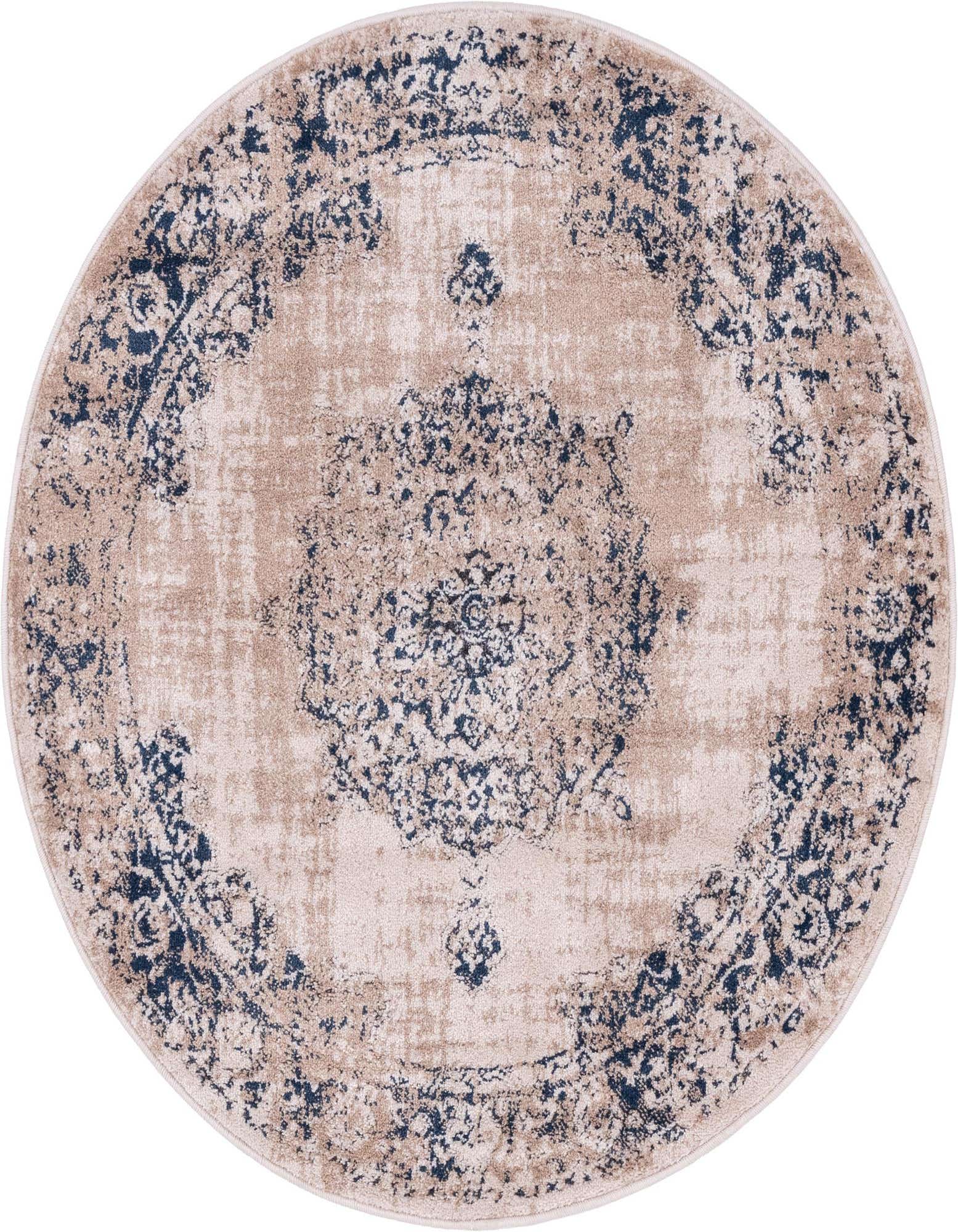 Primary color is Beige and Blue. Colors in this rug include: Beige and Blue, Ivory, Navy Blue.