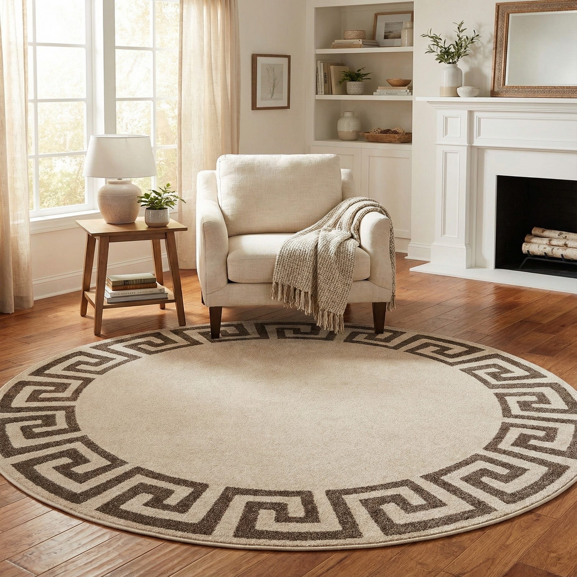 6' x 6' Greek Key Round Rug