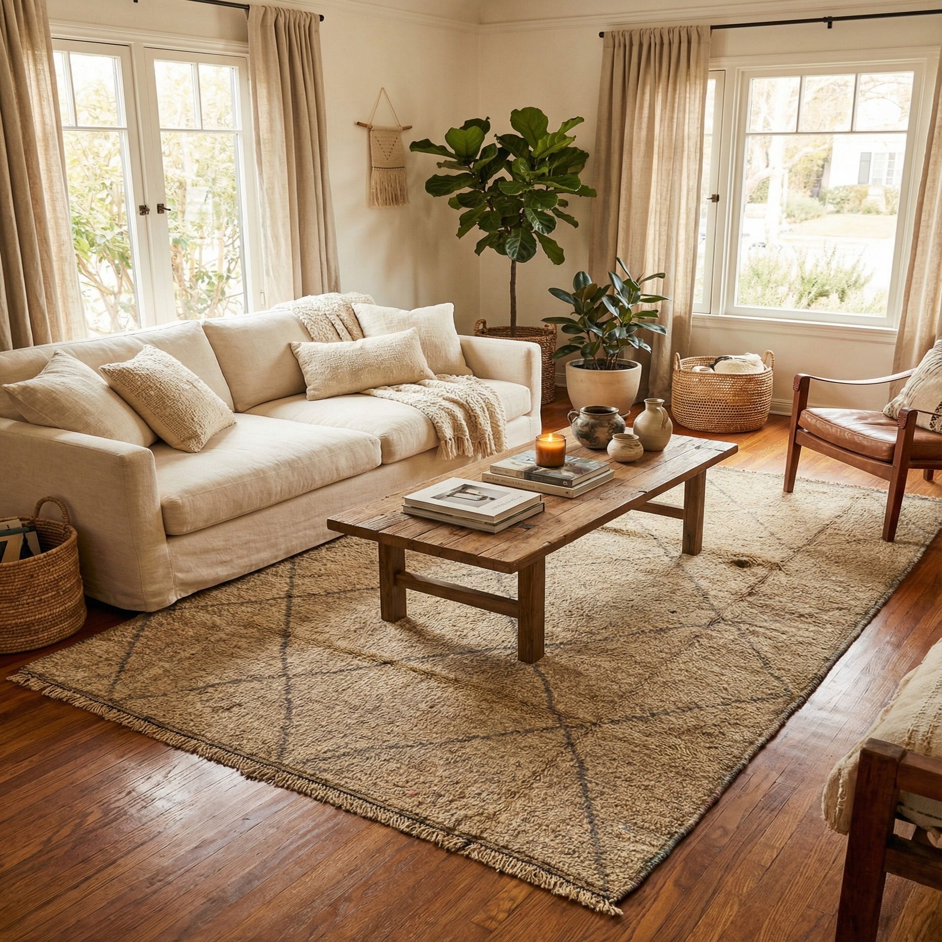 6' x 9' 2 Hand Knotted Moroccan Wool Rug