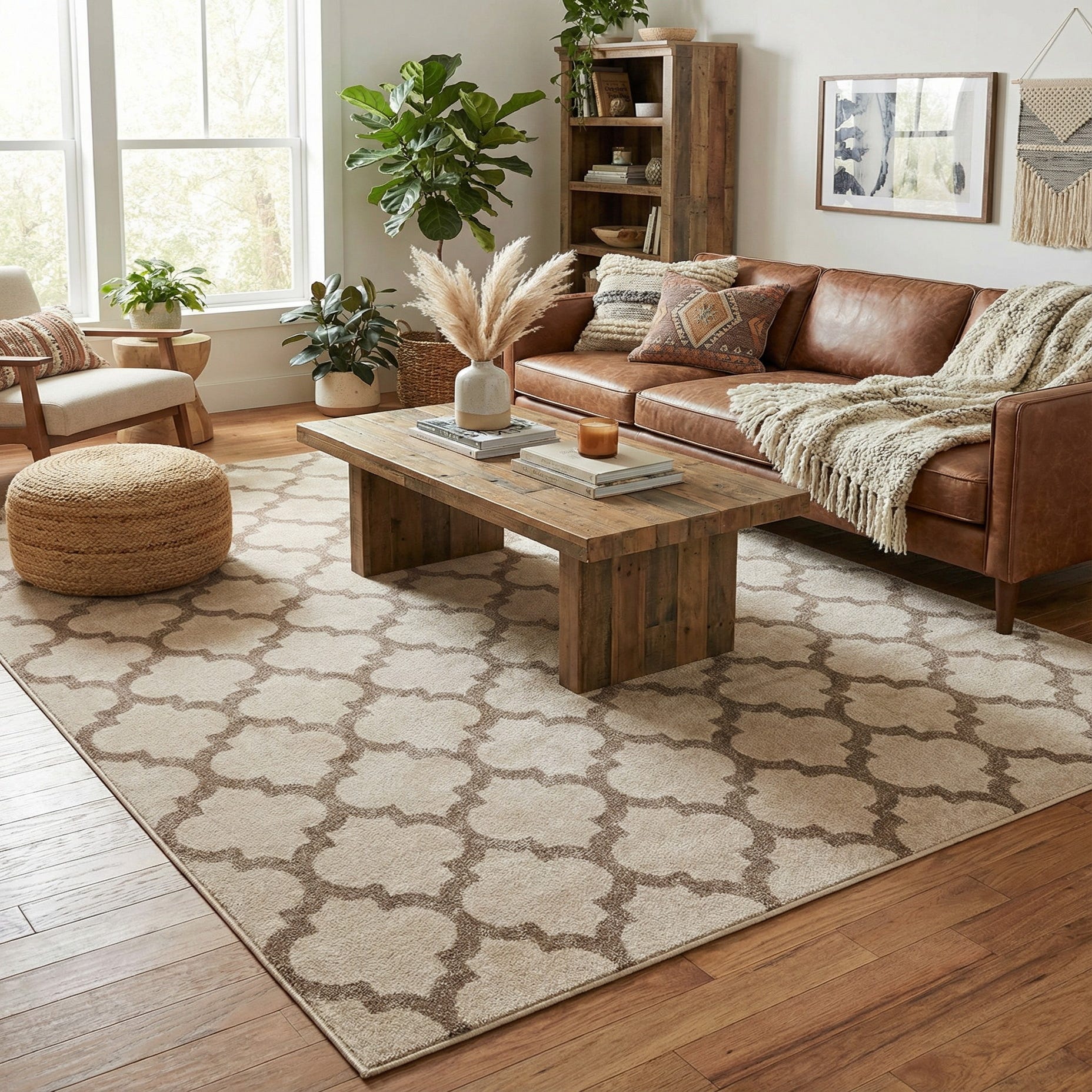 Primary color is Beige and Light Brown. Colors in this rug include: Beige and Light Brown, Beige, Tan.