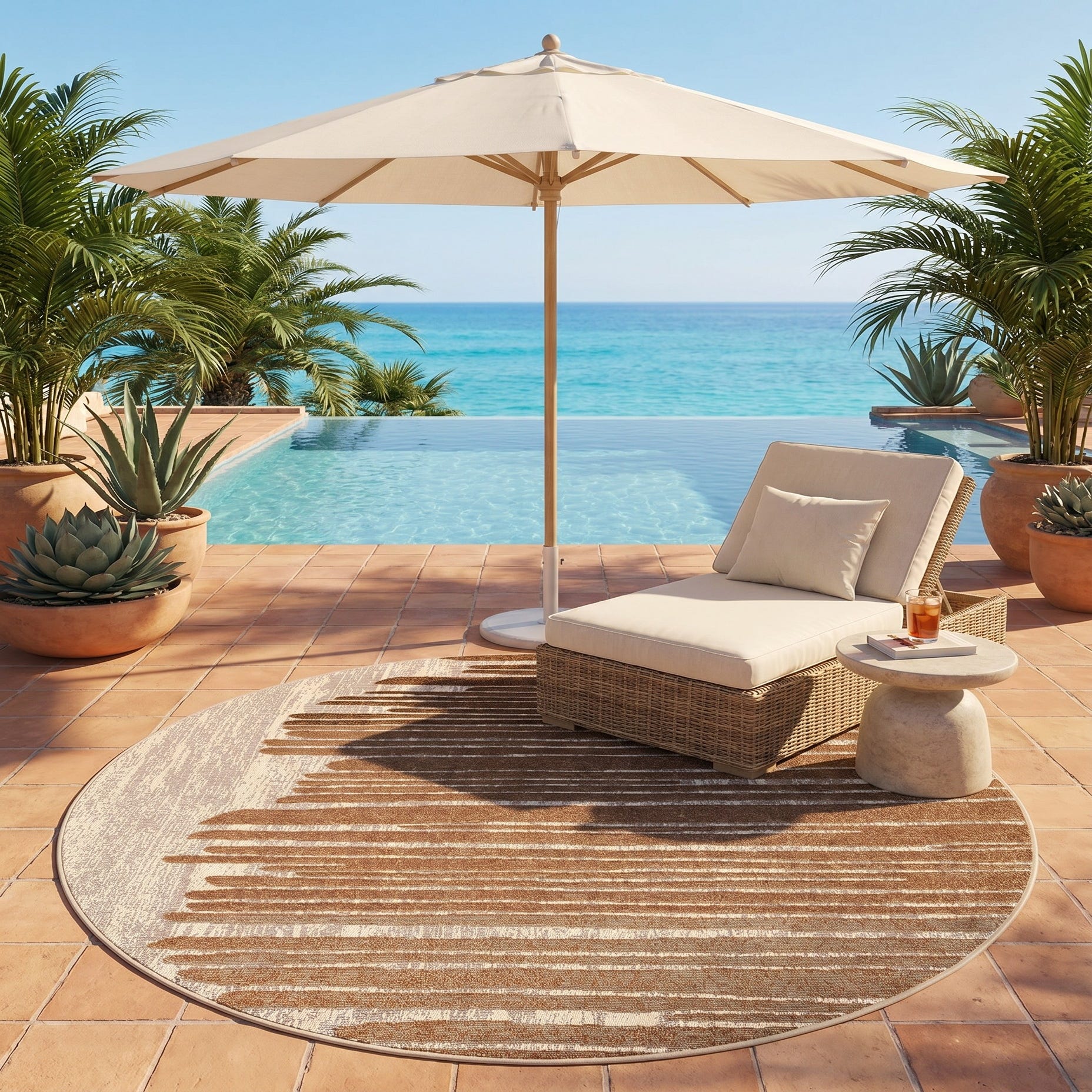 5' x 5' Easy-Clean Modern Indoor / Outdoor Round Rug
