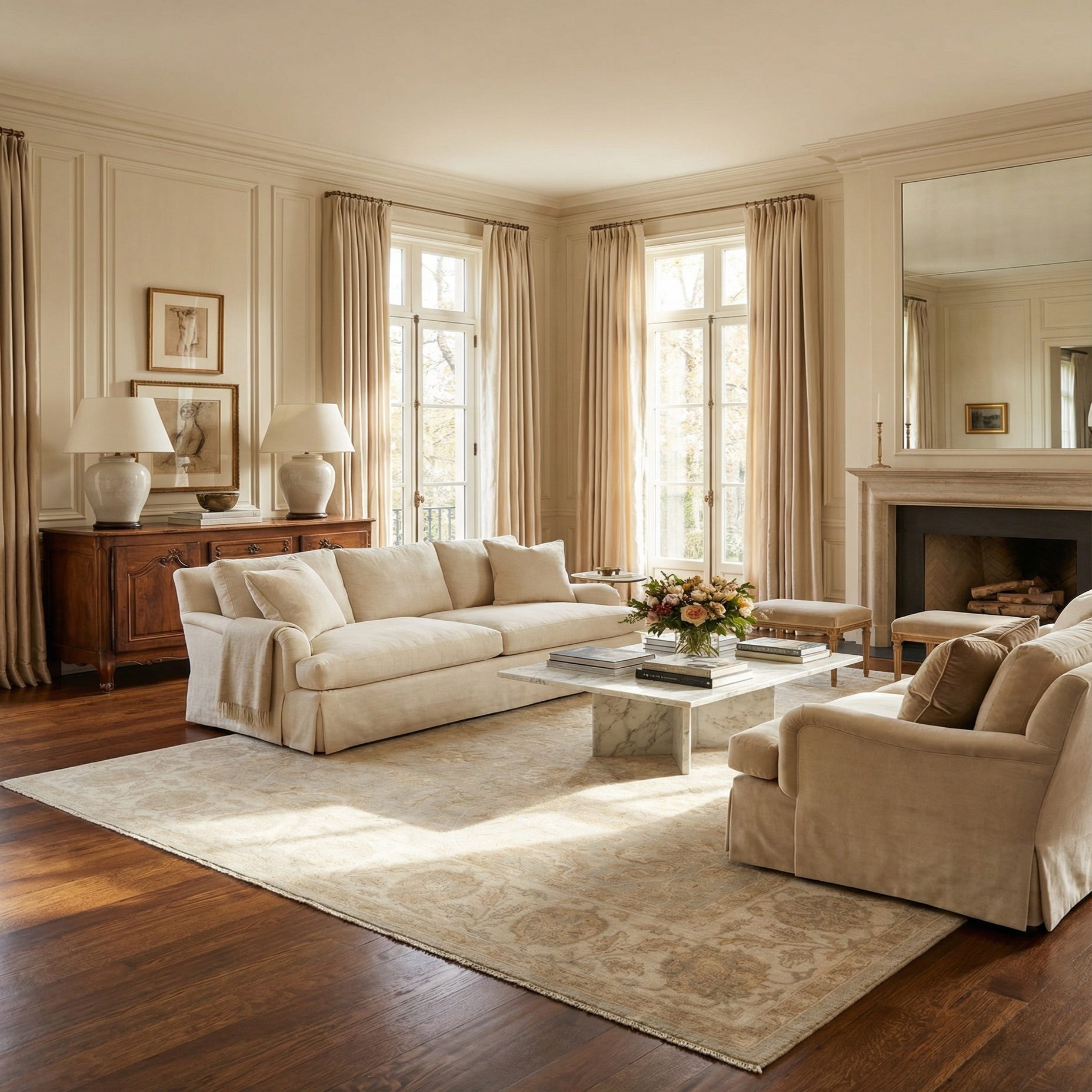Primary color is Beige. Colors in this rug include: Beige, Rectangle.