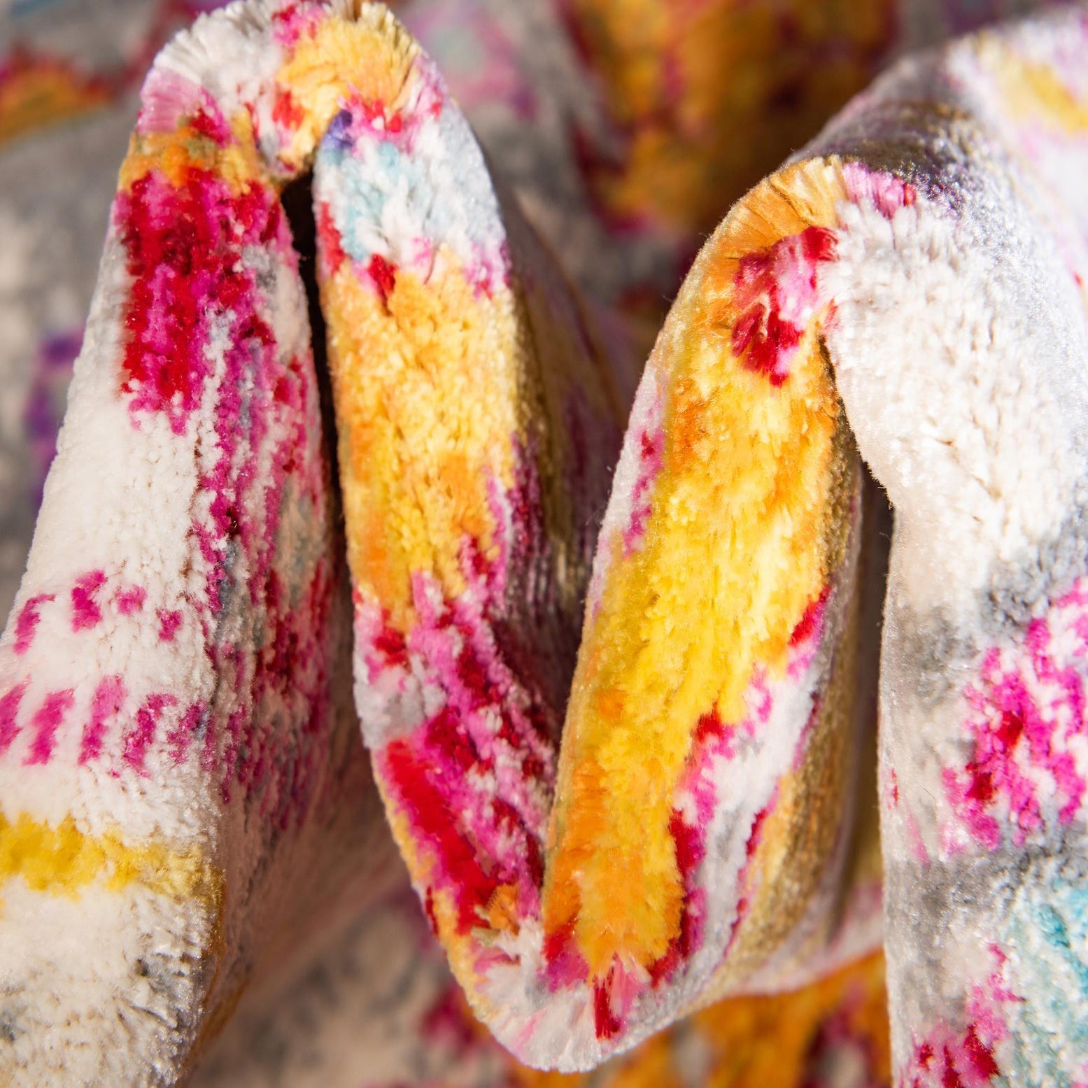 Primary color is Beige. Colors in this rug include: Beige, Burgundy, Gold, Pink, Purple, Blue, Tan.