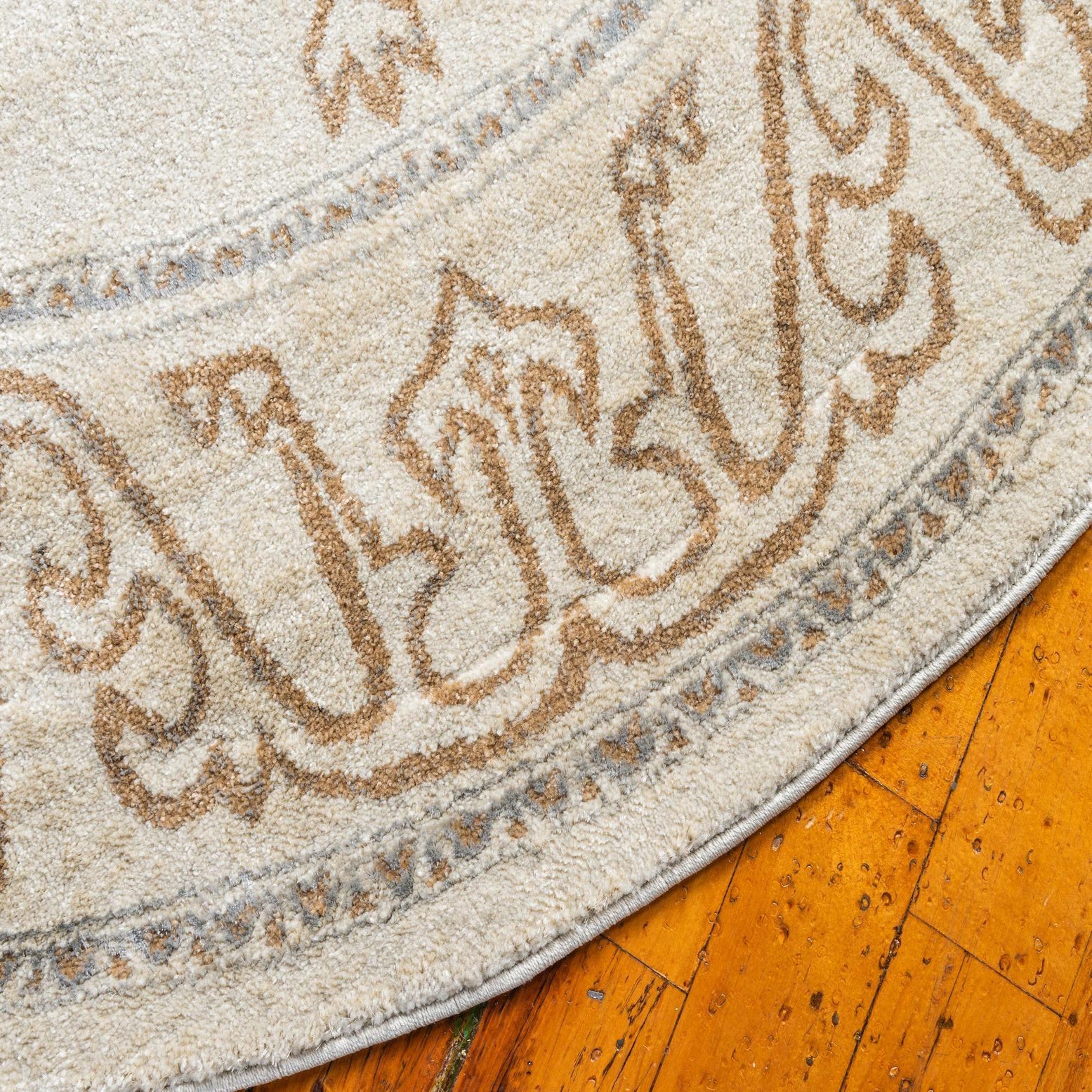 Primary color is Beige. Colors in this rug include: Beige, Brown, Gray, Silver, Gold.