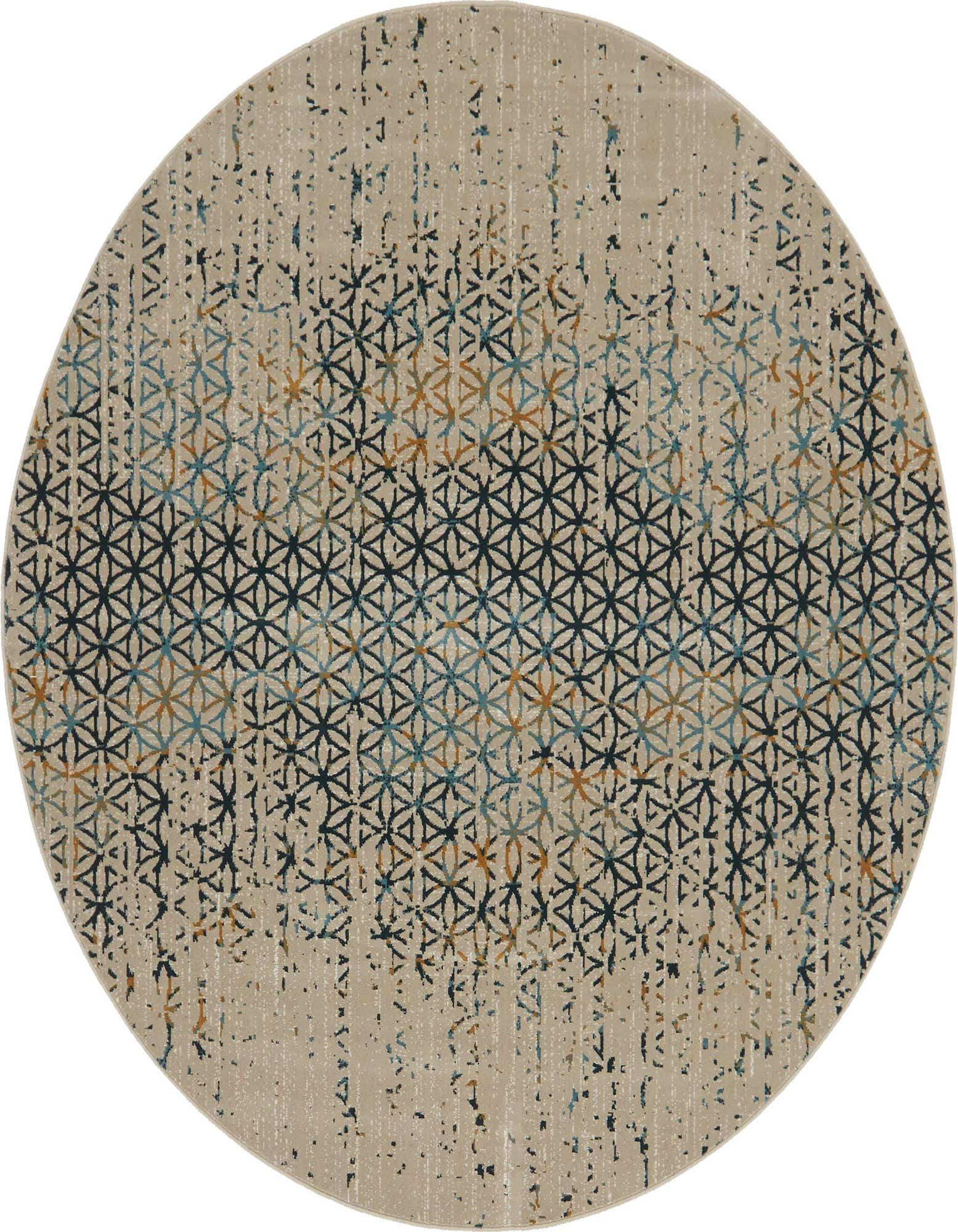 Primary color is Beige. Colors in this rug include: Beige, Blue, Brown, Ivory, Navy Blue, Orange.