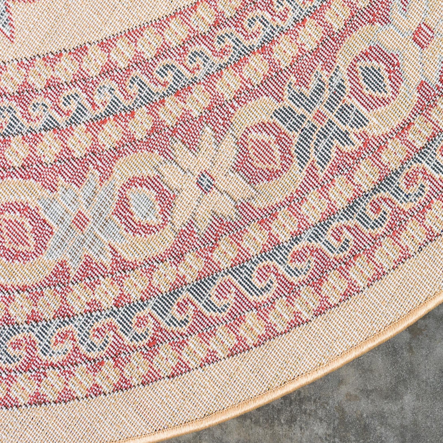 Primary color is Beige. Colors in this rug include: Beige, Red, Light Blue, Navy Blue, Light Green, Brown.
