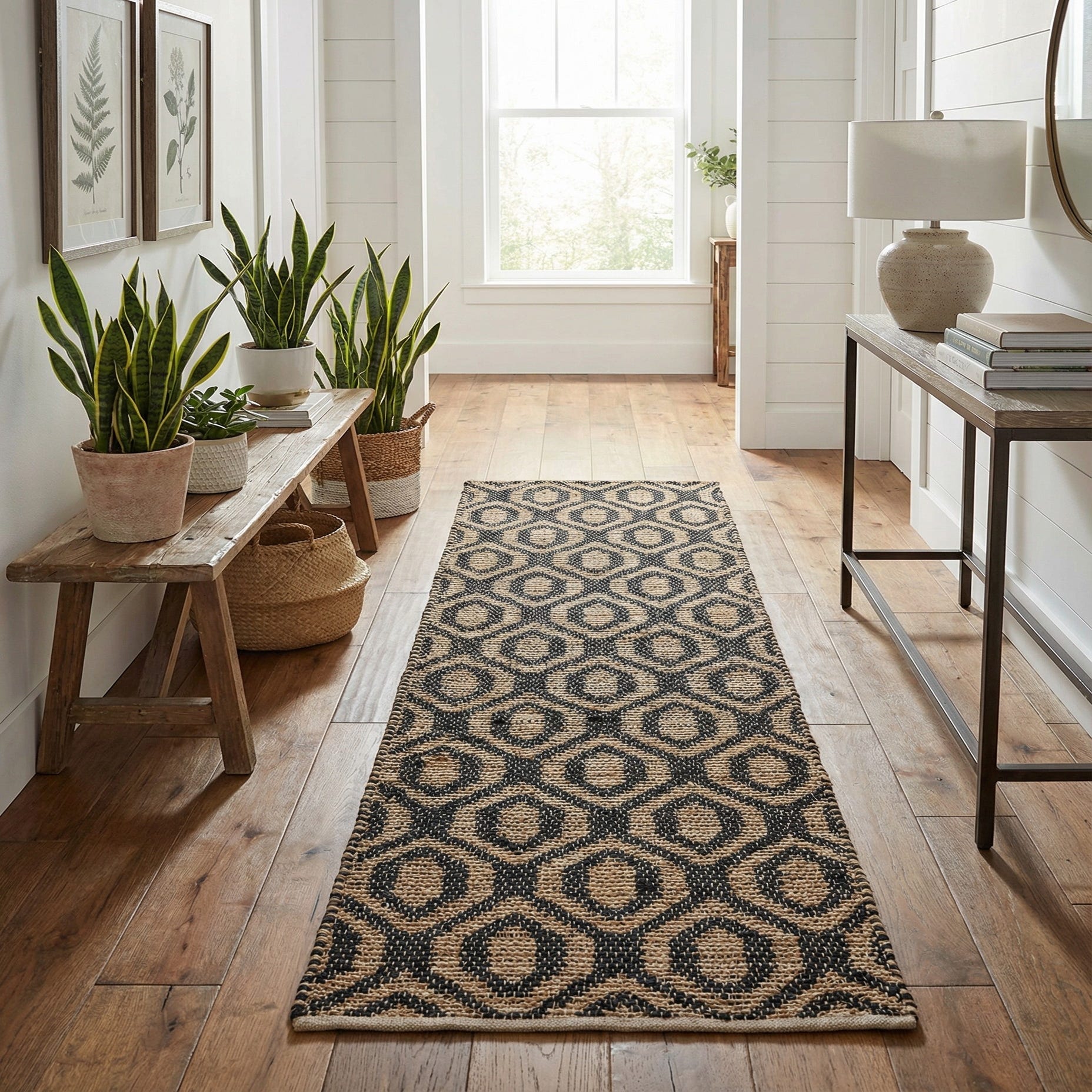 Detail image of 2' 7 x 10'  Hand Woven Chindi Jute Runner Rug