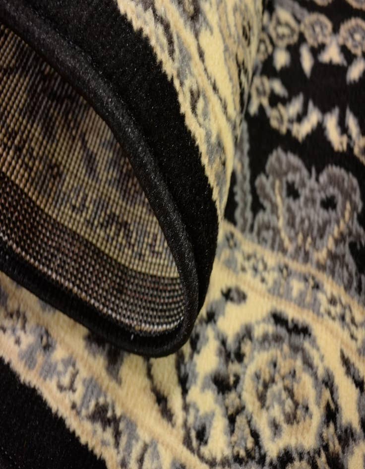 Primary color is Black. Colors in this rug include: Black, Gray, Tan, Ivory.