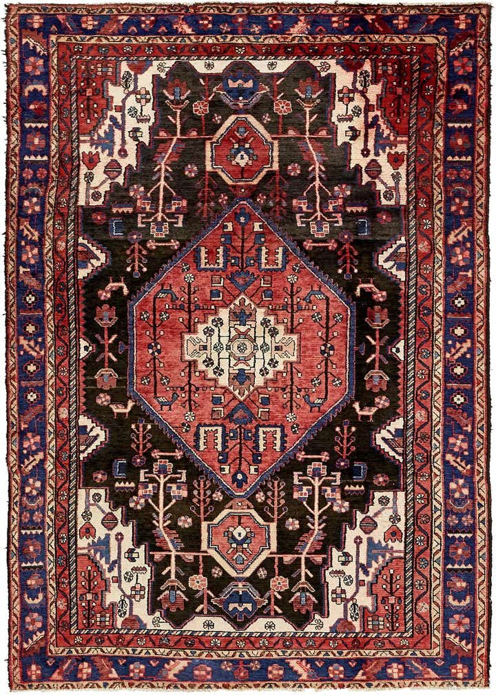 Primary color is Black. Colors in this rug include: Black, Beige, Blue, Green, Ivory, Navy Blue, Red, Pink.