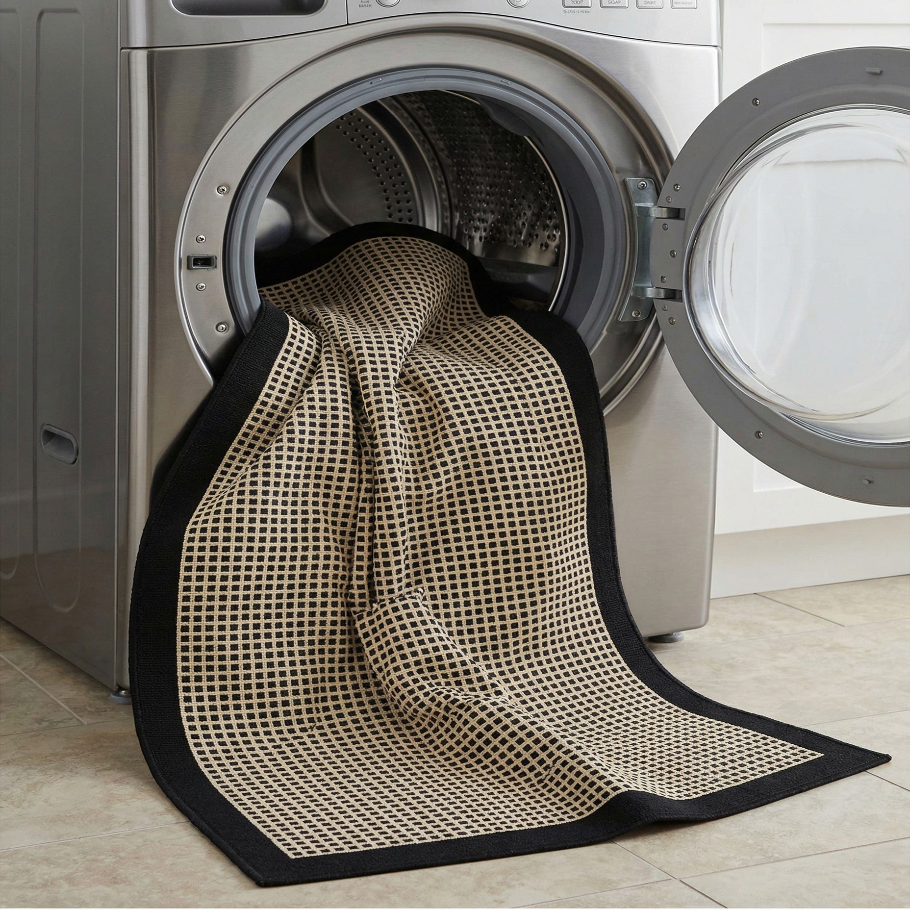 Primary image 2' 7 x 10'  Washable Border Indoor / Outdoor Runner Rug