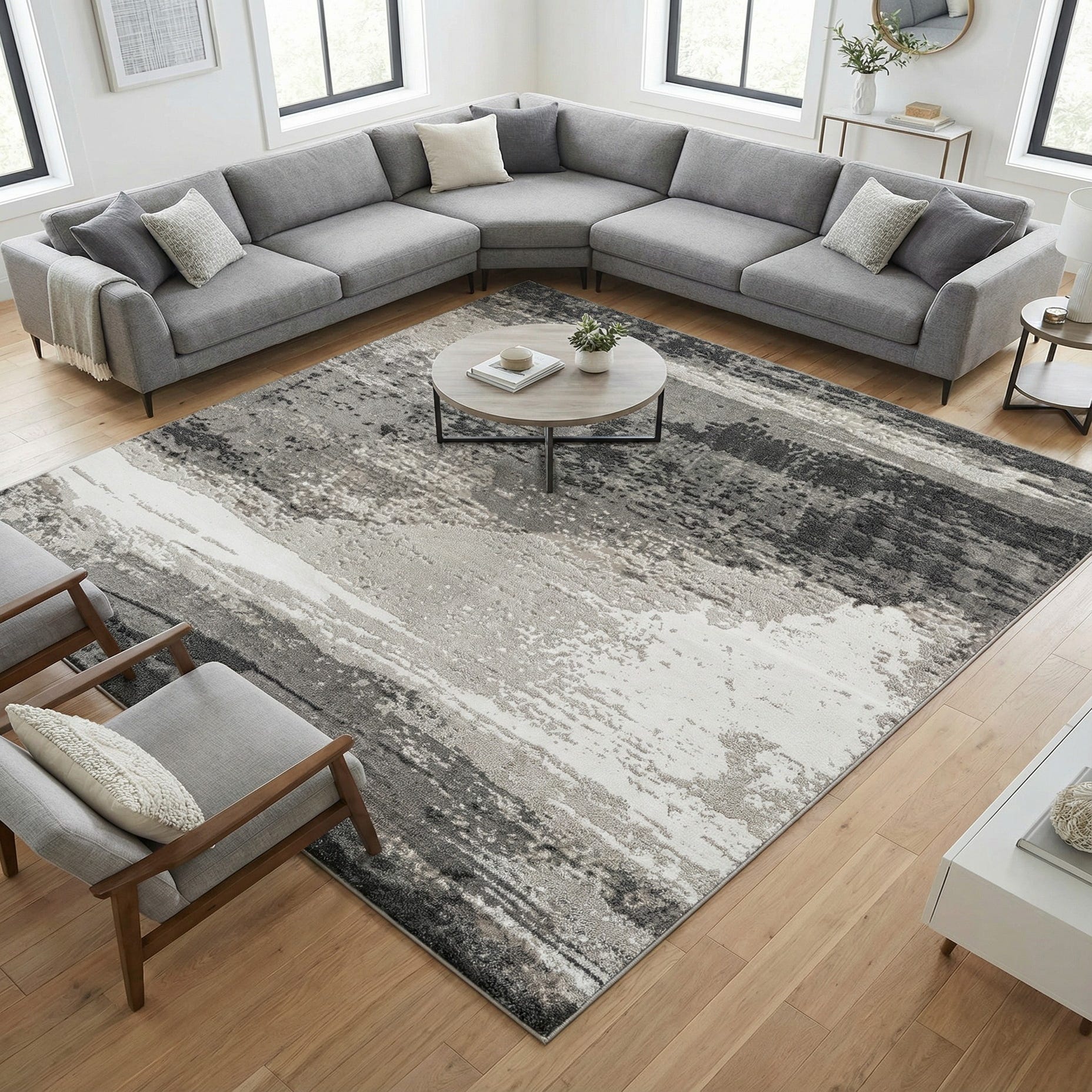 • Charcoal gray fabric sectional
