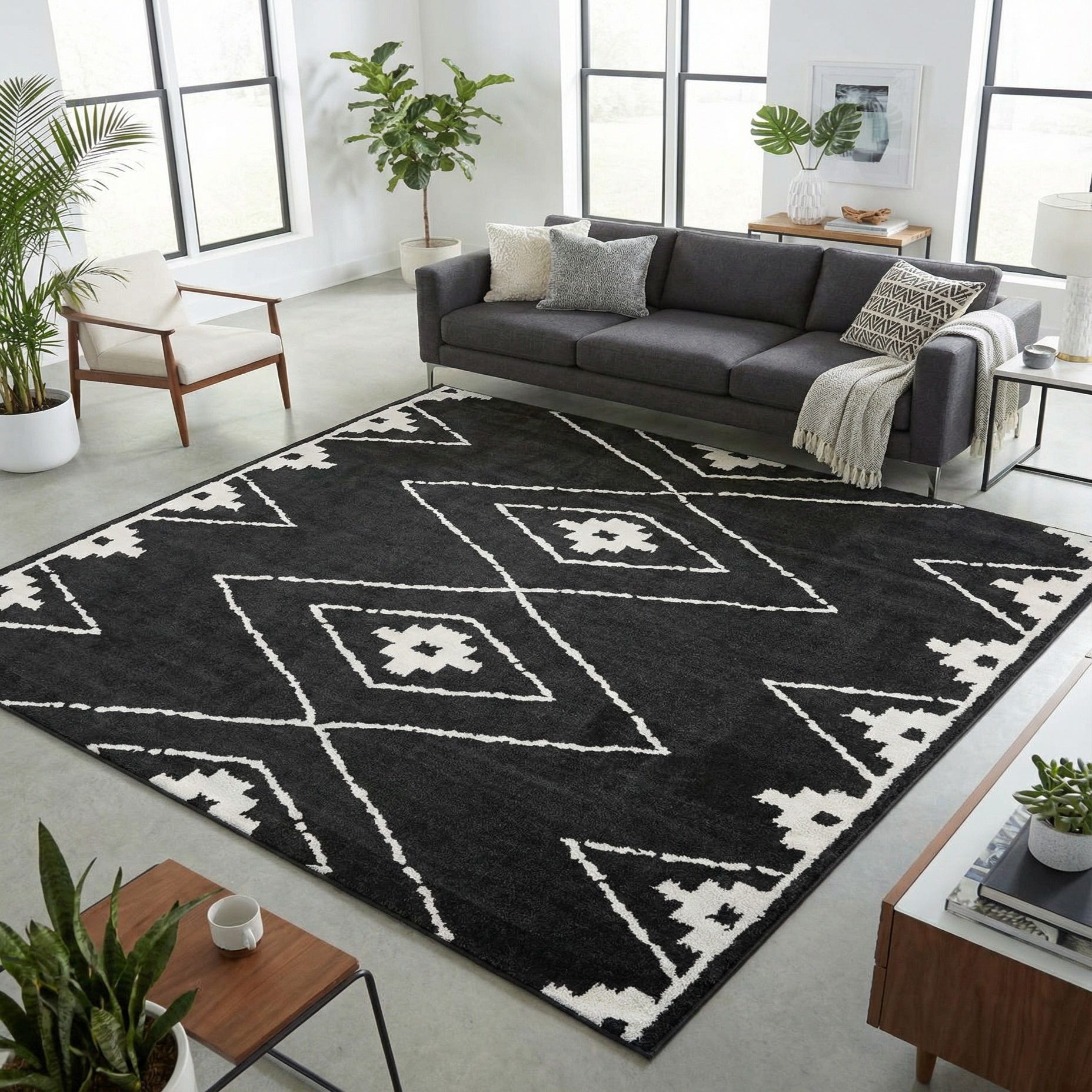 Primary color is Black. Colors in this rug include: Black, Ivory.