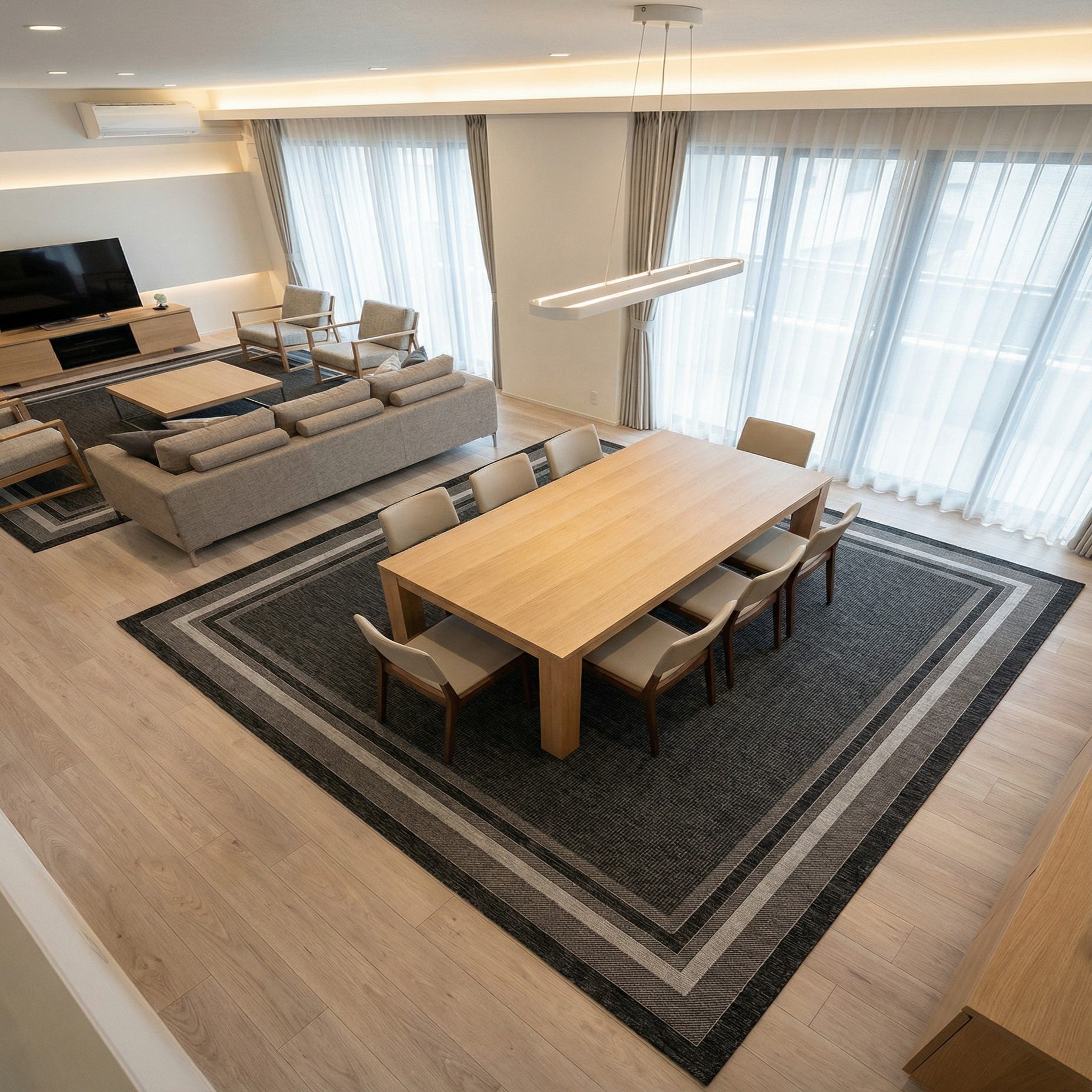 Primary color is Black. Colors in this rug include: Black, Beige, Gray.