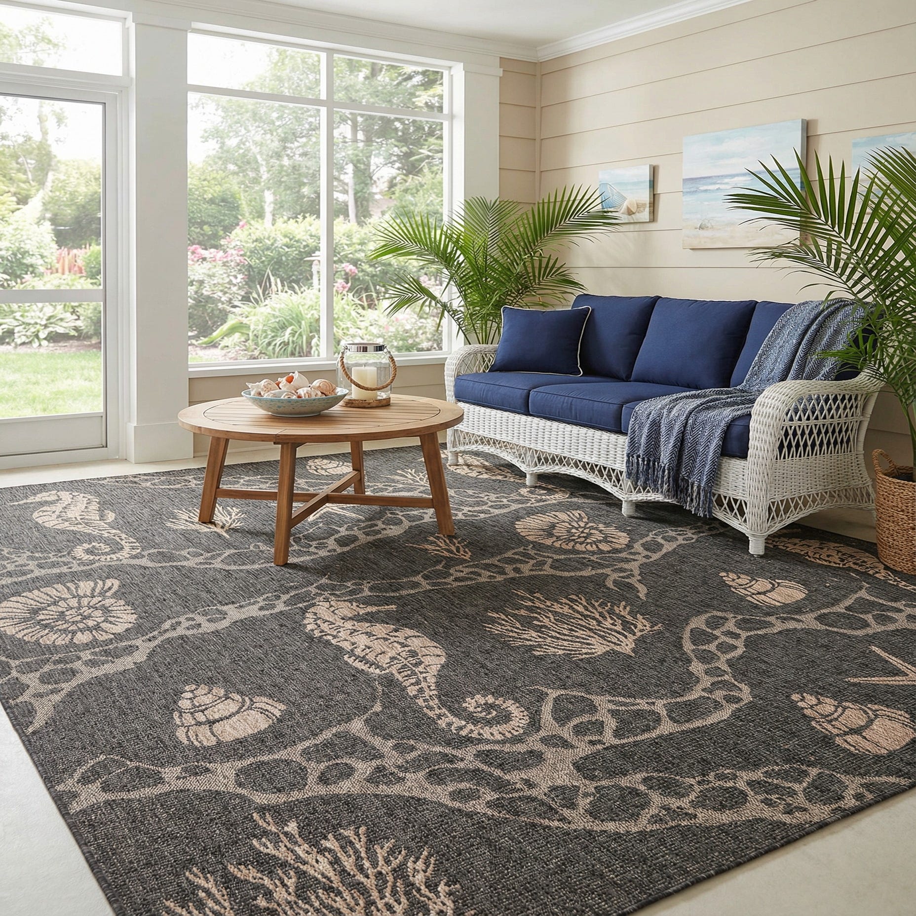 10' x 10' Washable Coastal Indoor / Outdoor Square Rug