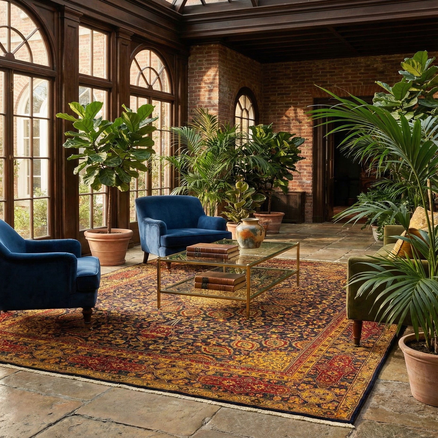 Primary color is Black. Colors in this rug include: Black, Red, Green.