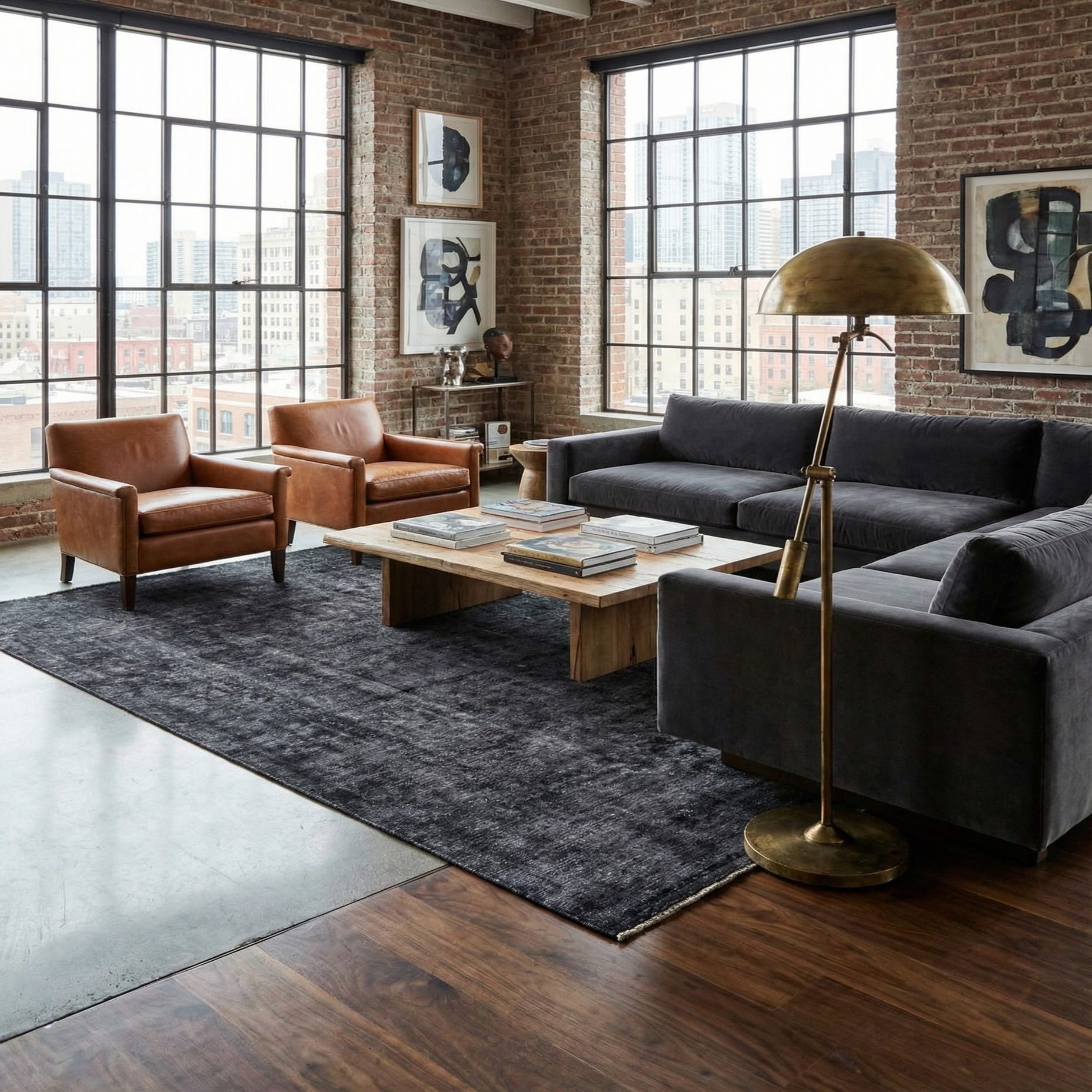 Primary color is Black. Colors in this rug include: Black, Gray.