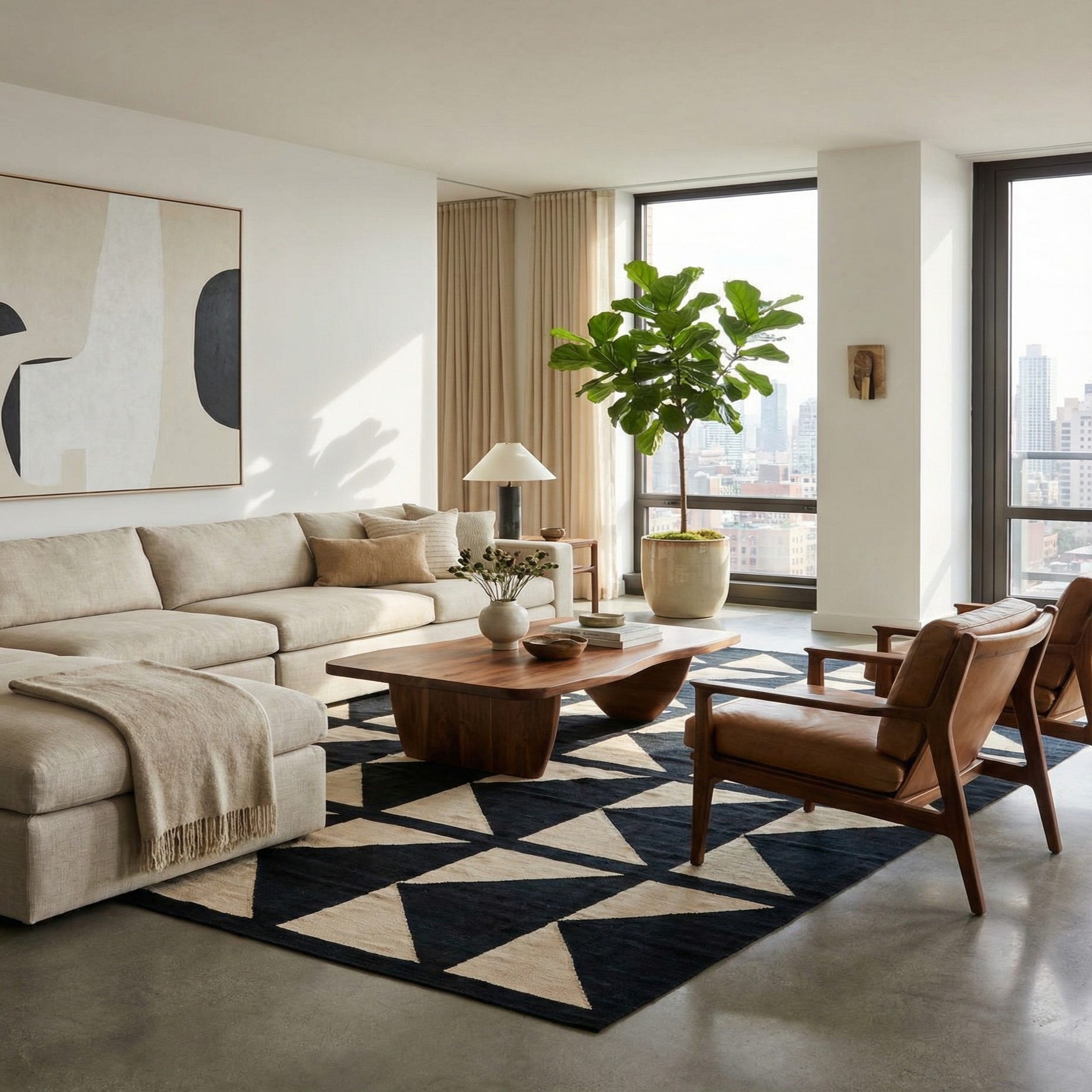 Primary color is Black. Colors in this rug include: Black, Ivory.