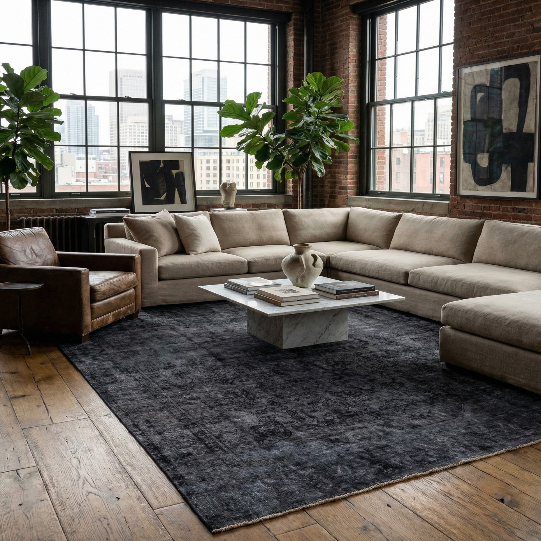 Primary color is Black. Colors in this rug include: Black, Gray, Ivory.