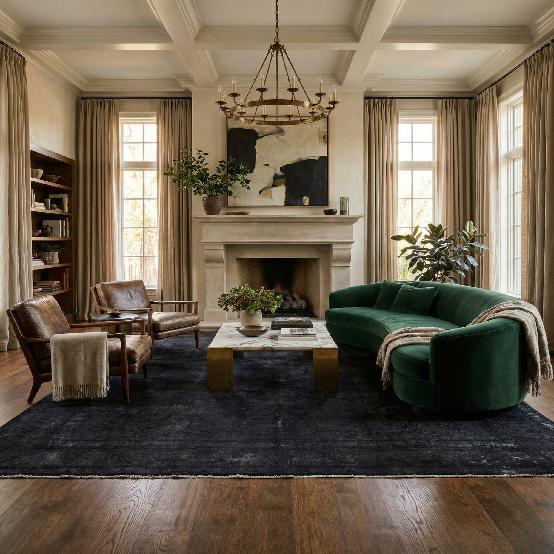 Primary color is Black. Colors in this rug include: Black, Gray.