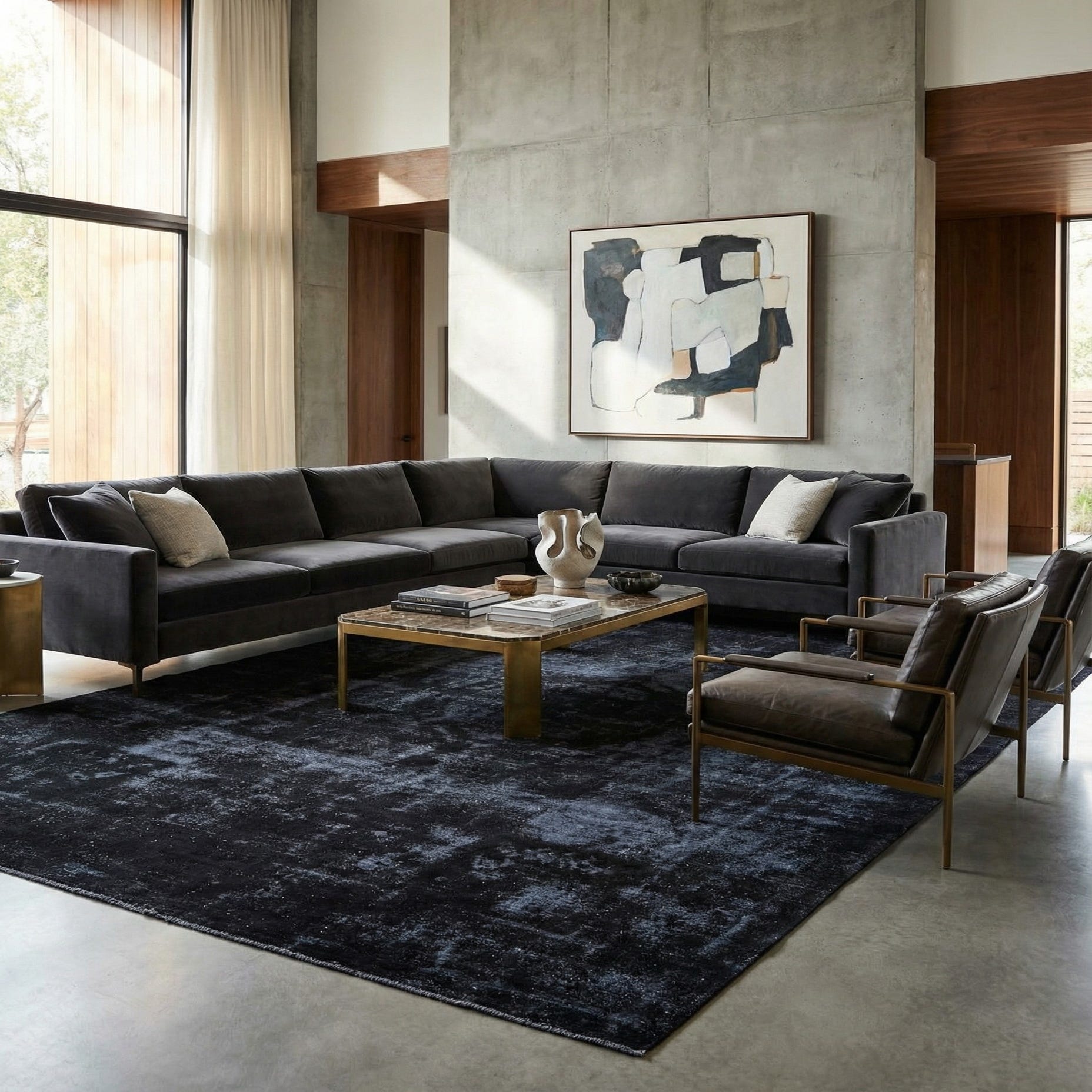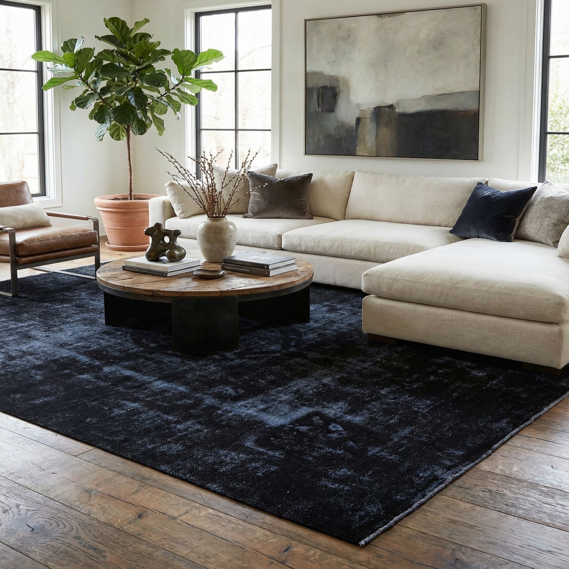 Primary color is Black. Colors in this rug include: Black, Gray.