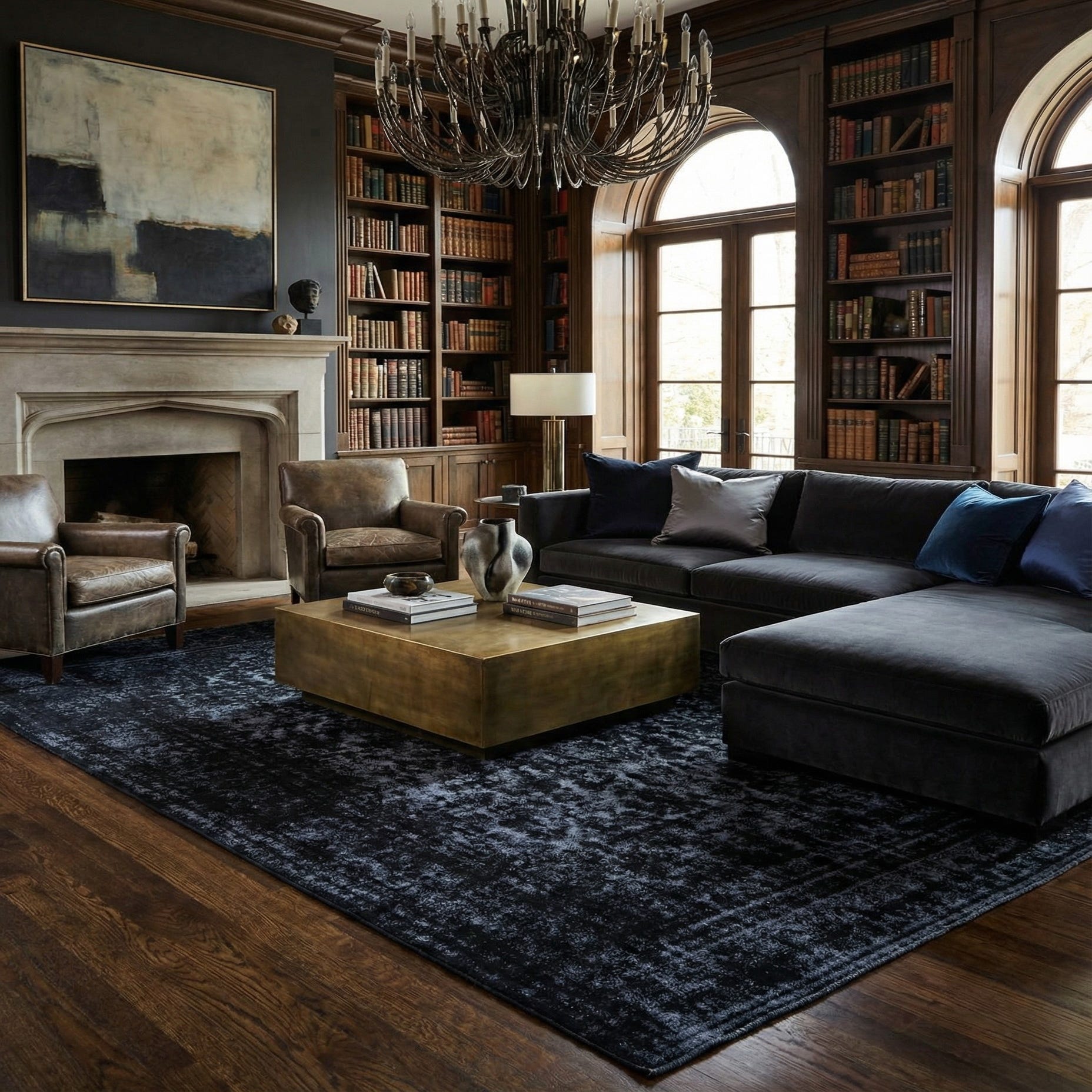 Primary color is Black. Colors in this rug include: Black, Gray.