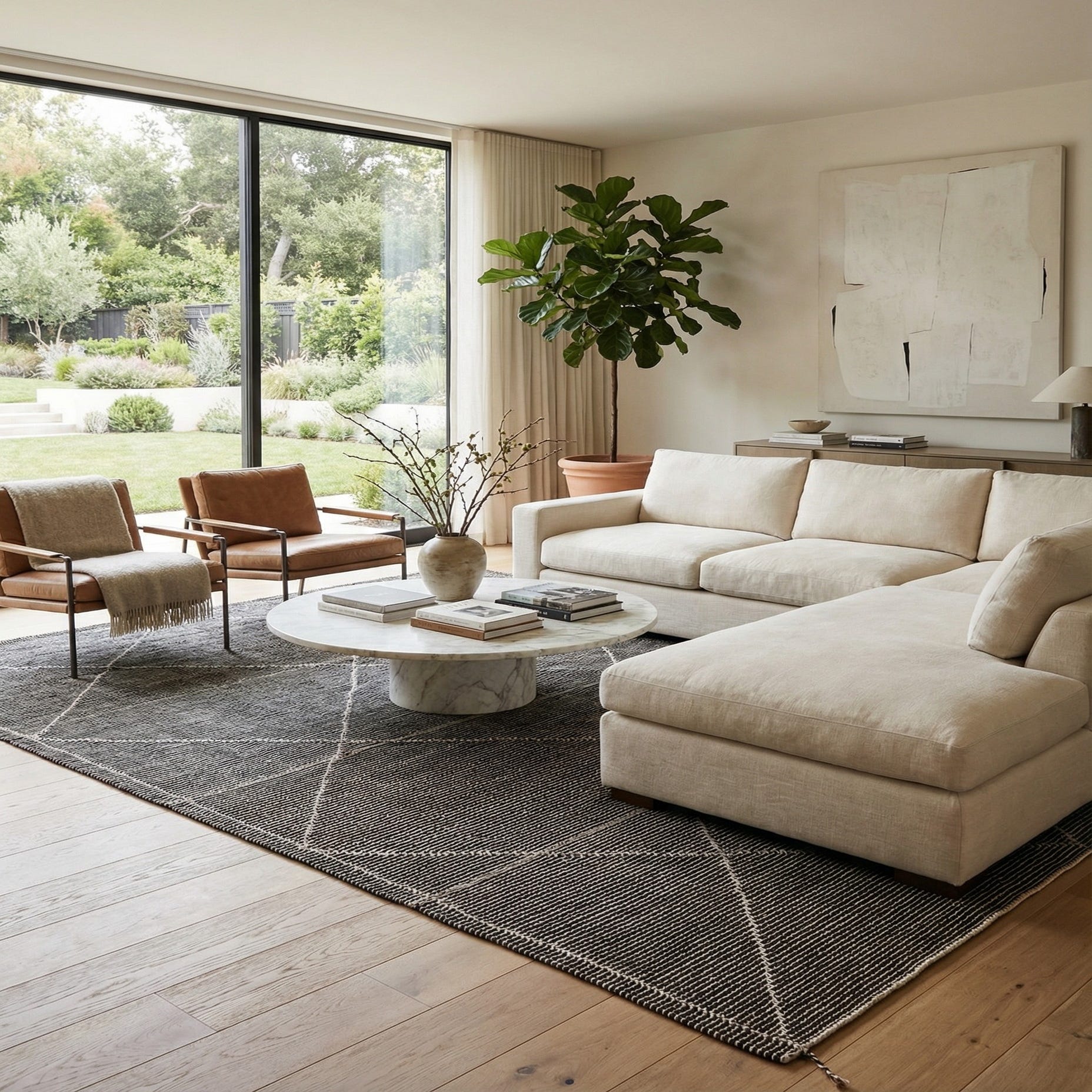 Primary color is Black. Colors in this rug include: Black, Ivory.