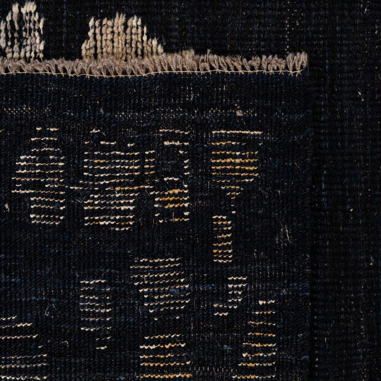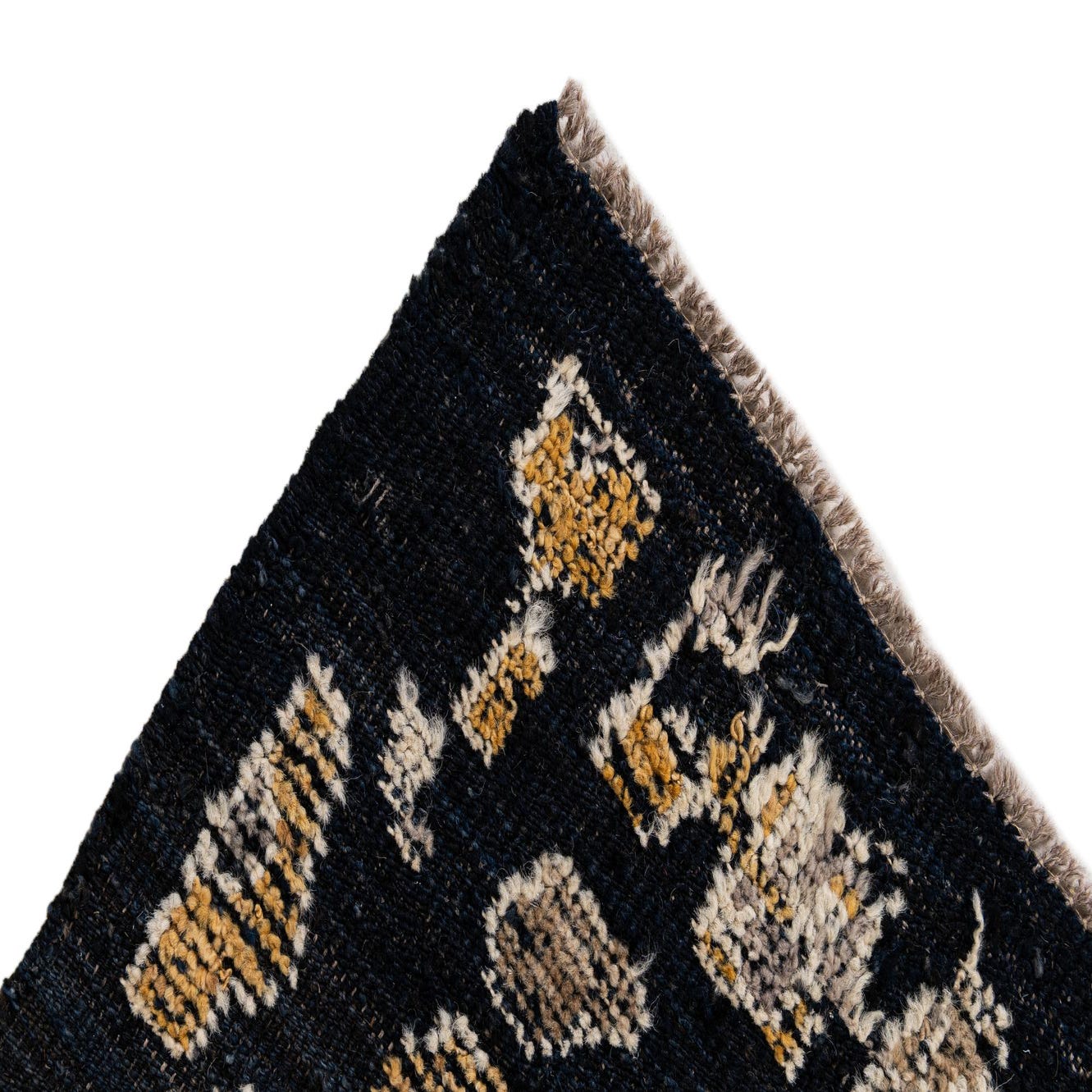 Primary color is Black. Colors in this rug include: Black, Gray, Ivory, Yellow, Light Brown.