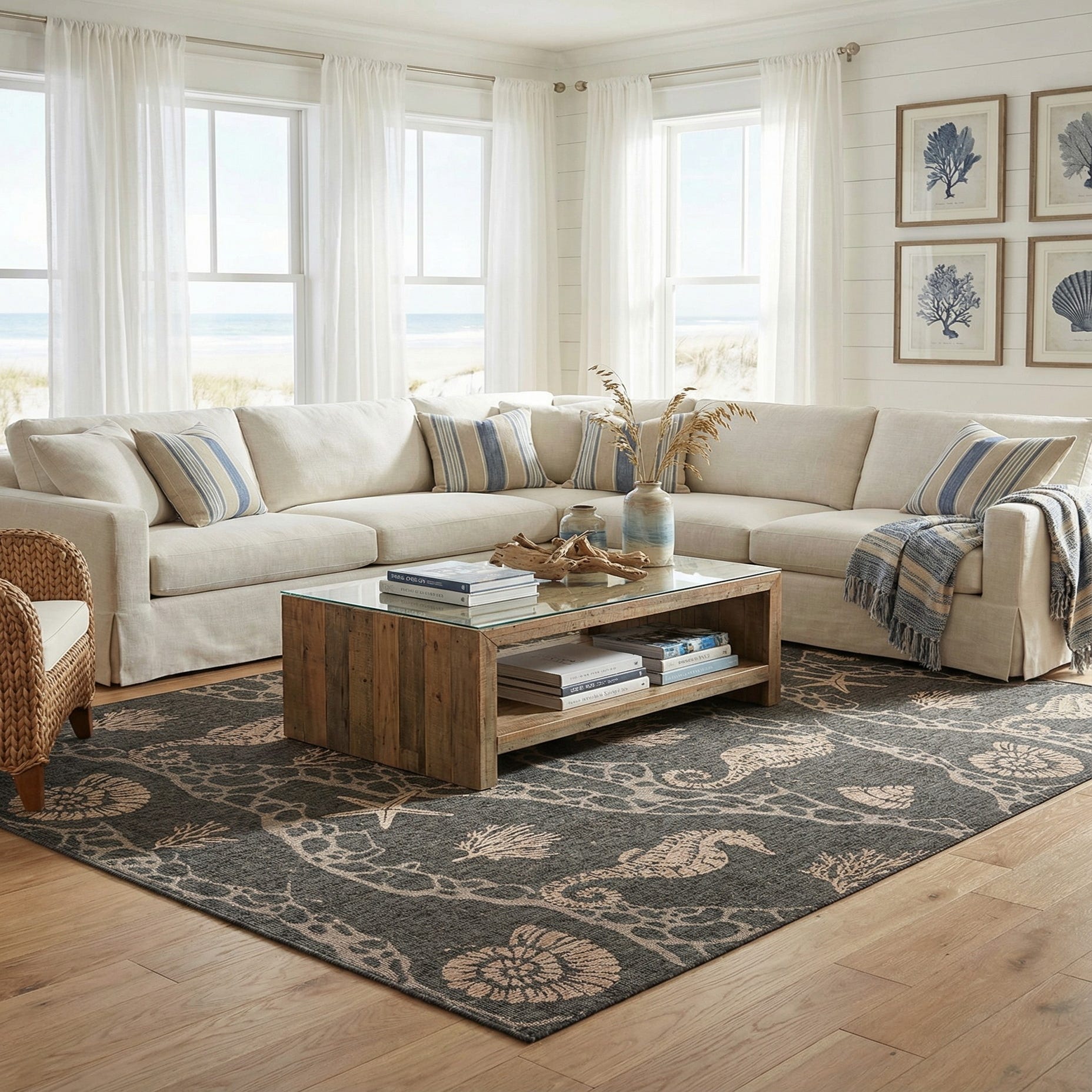 10' x 14' Washable Coastal Indoor / Outdoor Rug