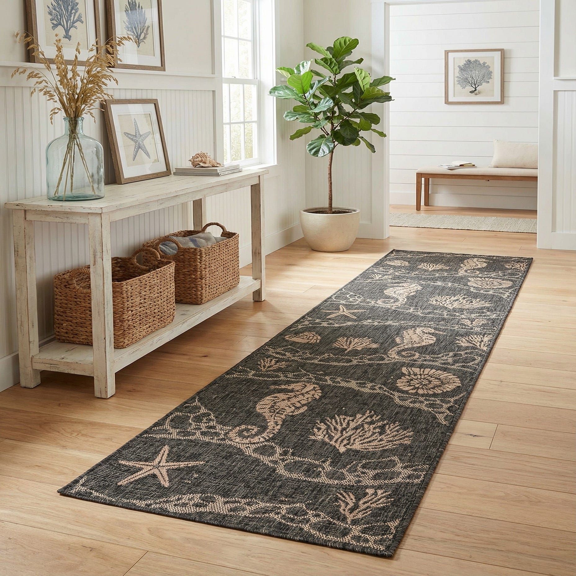 2' 7 x 12' Washable Coastal Indoor / Outdoor Runner Rug