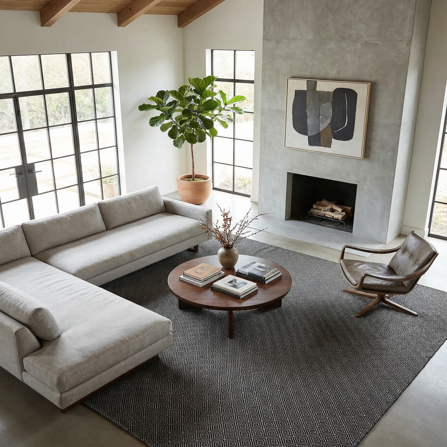 Detail image of 12' x 12'  Hand Woven Geo Trellis Flatweave Square Rug