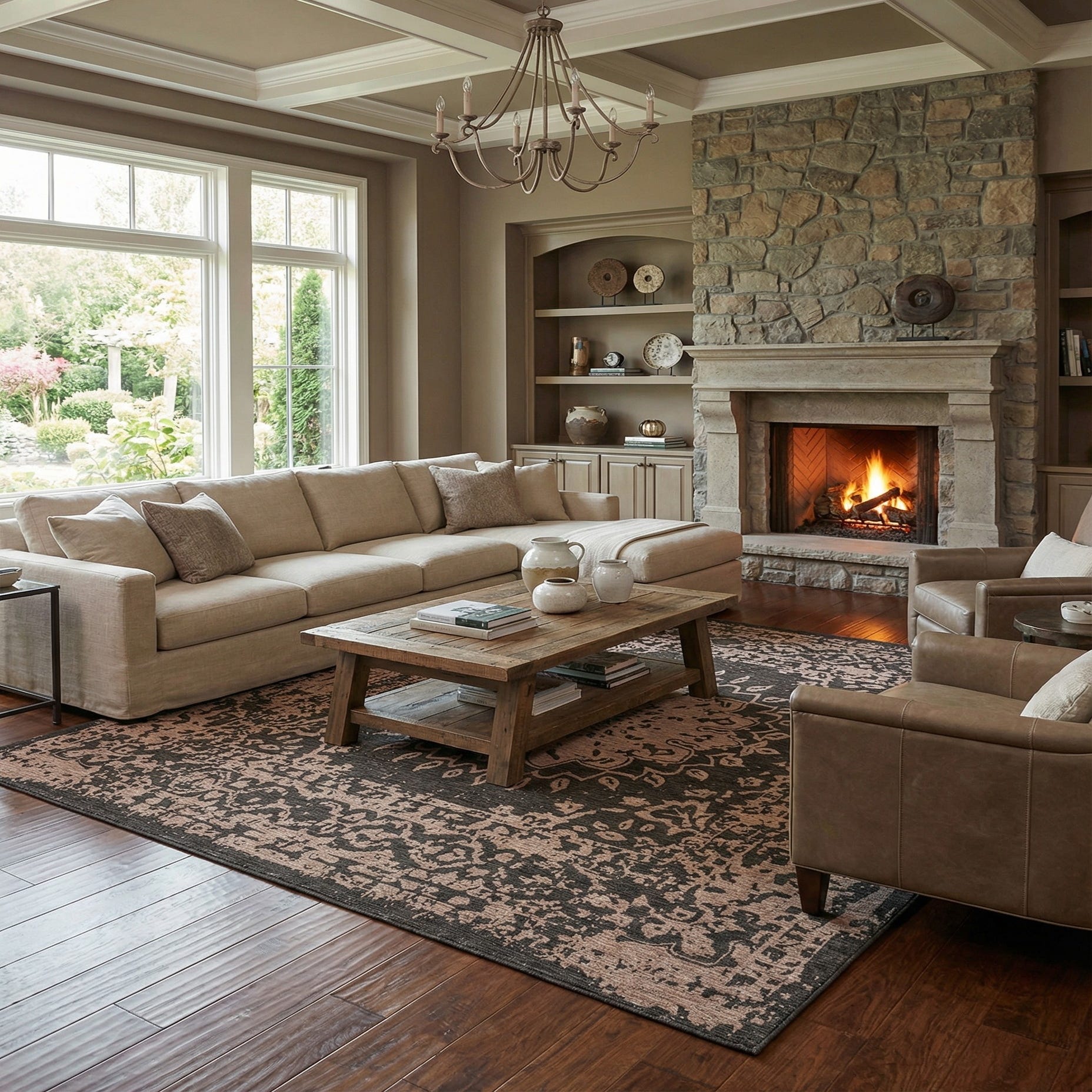 12' x 12' Washable Traditional Indoor / Outdoor Square Rug
