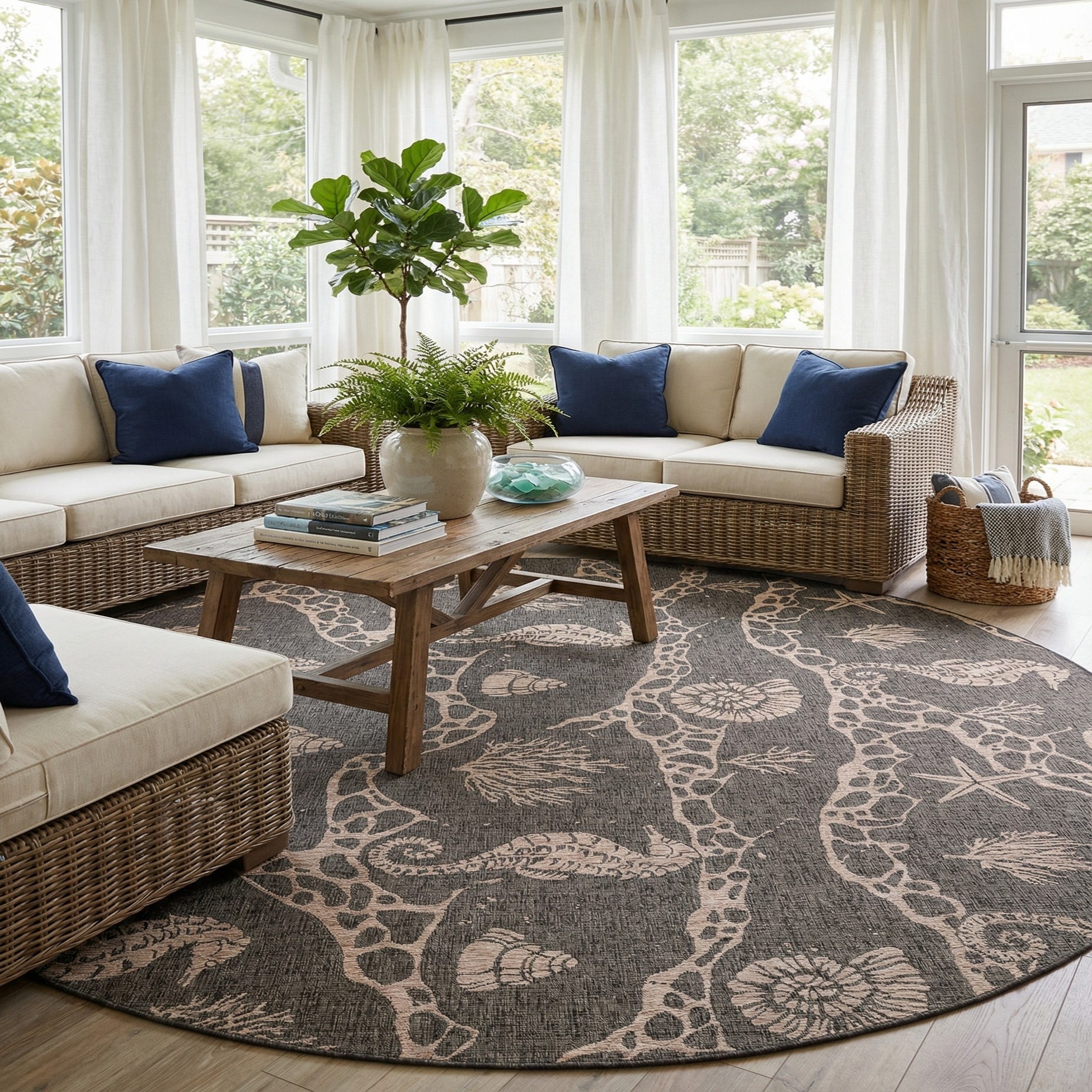 13' x 13' Washable Coastal Indoor / Outdoor Round Rug
