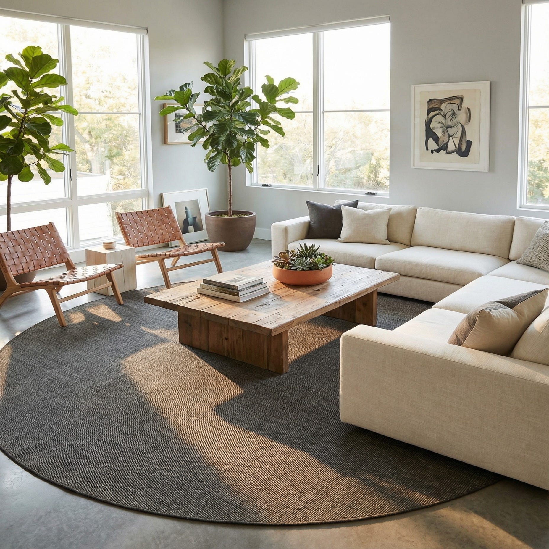 13' x 13' Washable Solid Indoor / Outdoor Round Rug