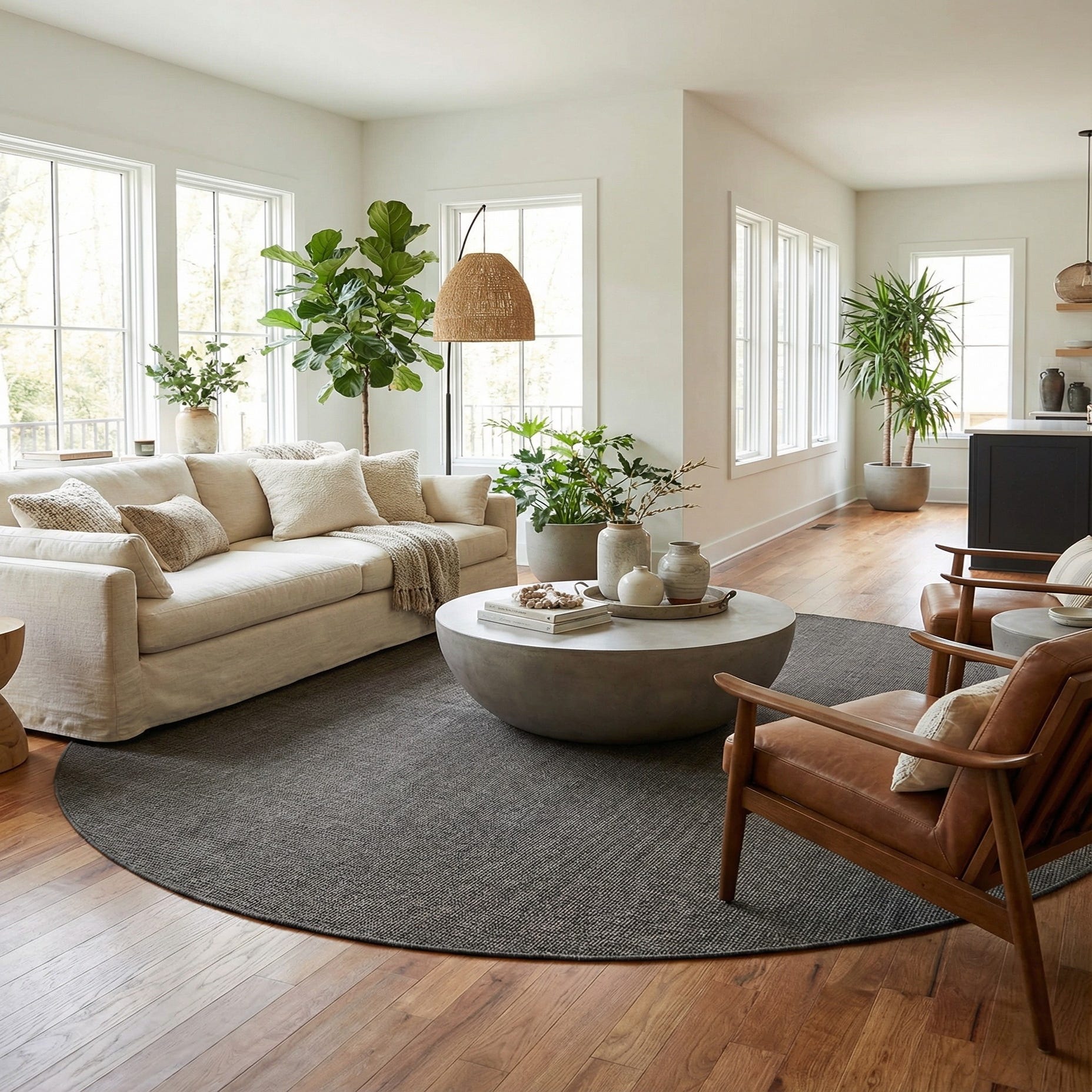 Primary image 13' x 13'  Washable Solid Indoor / Outdoor Round Rug